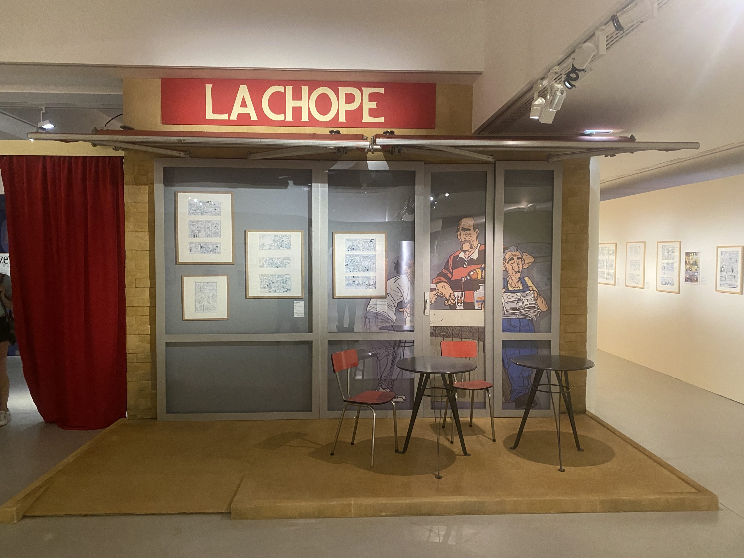 Les visiteurs sont d’abord accueillis par un lieu emblématique de la série pour adultes. Voici La Chope, le bar où se retrouvent souvent nos anarchistes préférés.