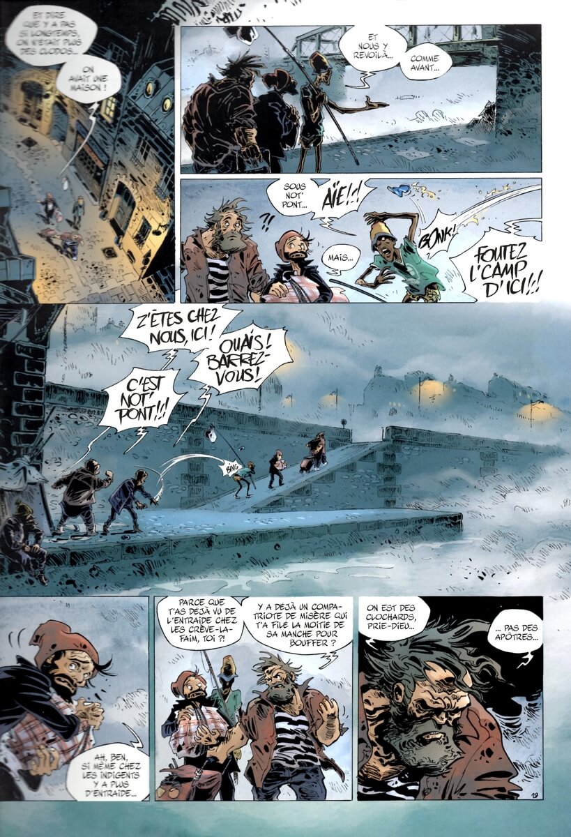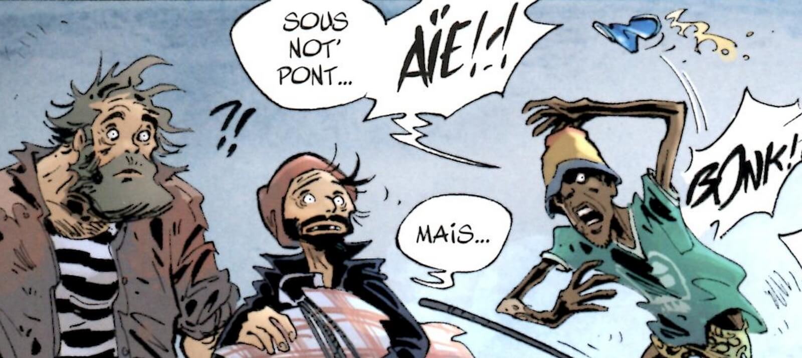 La dernière planche du premier tome d‘à coucher dehors, s’était avérée frustrante tant nous nous étions épris des aventures de Nicolas, Amédée et ses compagnons de rue. Fort heureusement, Aurélien Ducoudray et Anlor ne nous ont pas fait languir trop longtemps. Et la première satisfaction, à la fin de cette histoire, c’est que le rythme effréné est maintenu jusqu’au bout. Ainsi, est-ce qu’Amédée parviendra à ramener Nicolas à la maison à temps ? C’est une véritable course contre la montre qui s’annonce et l’enjeu est clair : si le clochard échoue, il perdra son statut de tuteur et le toit qu’il avait hérité.