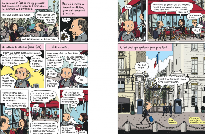 Au fil de ces 155 pages, Mathieu Sapin tente de nous emmener de l’autre côté du miroir, sans pour autant « faire la com » de Beauvau. C’était d’ailleurs ce dernier, par la voix de sa directrice adjointe de la communication, qui l’avait sollicité pour réaliser une bande dessinée…