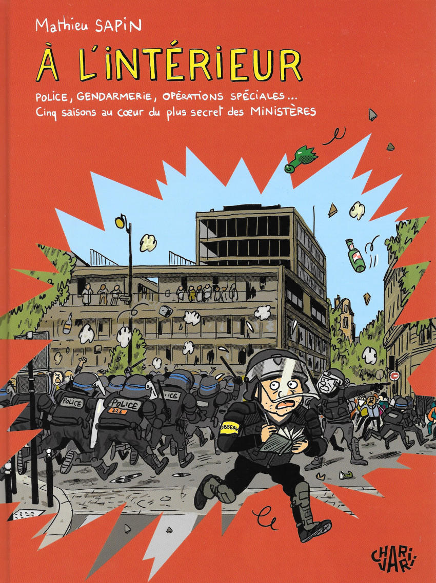 Résumé de l’éditeur : Pendant un an et demi, Mathieu Sapin a pu observer de l’intérieur ce qui se passe « À l’Intérieur ». Un reportage exceptionnel, au coeur de l’actualité parfois brûlante (les manifestations contre la réforme des retraites ; l’affaire Nahel ; la crise à Mayotte ; la venue du pape à Marseille ; la Nouvelle-Calédonie ; les législatives anticipées) et du quotidien de ces femmes et de ces hommes, attachés au service public, qui assurent notre sécurité à tous, dans les commissariats, les préfectures, les DOM-TOM, en ville ou à la montagne…Avec son regard distancié et son humour, Mathieu Sapin nous raconte le ministère régalien le plus scruté, décrié et critiqué par le peuple français.