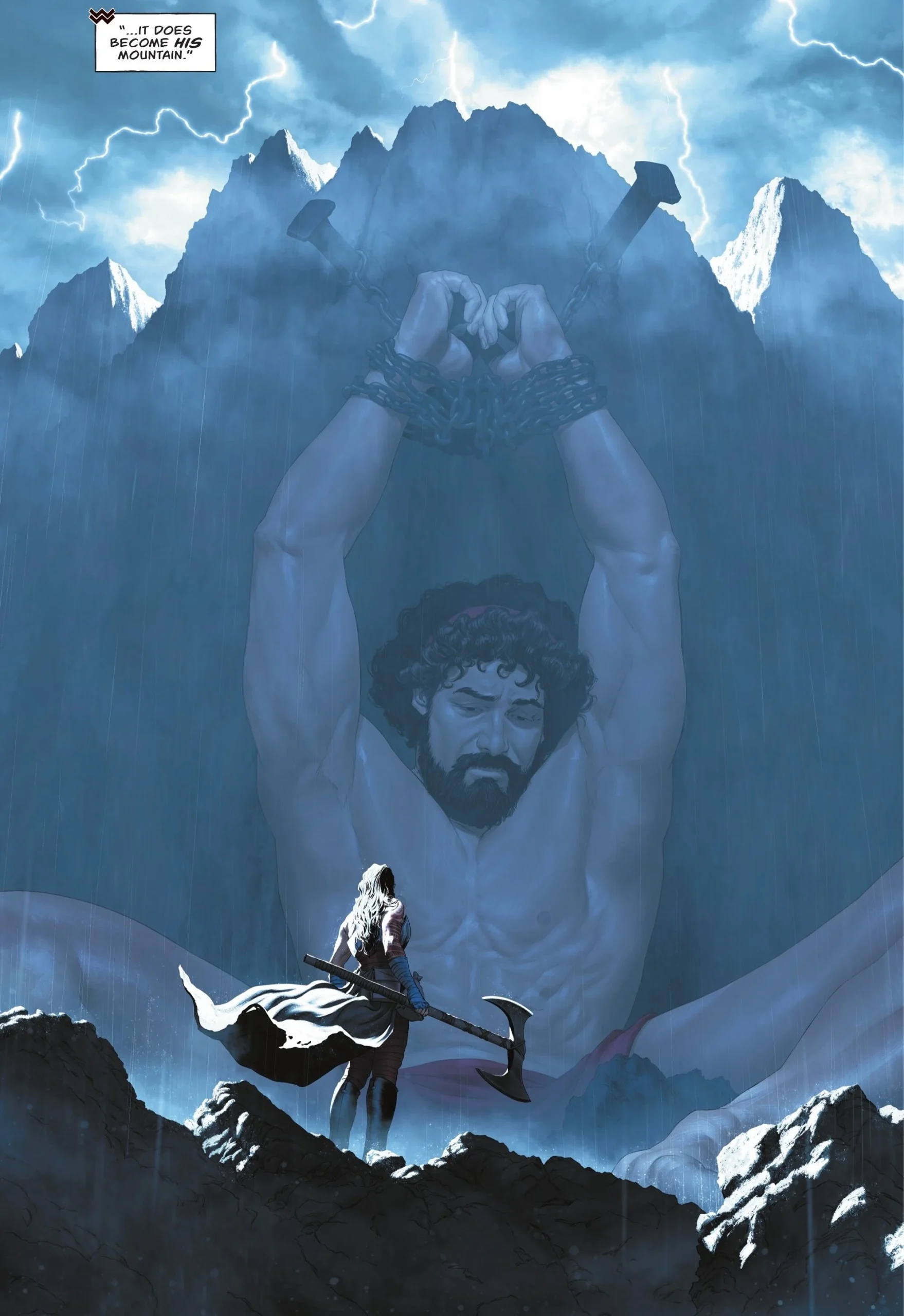 Dans les deux premiers chapitres de ce second tome, l’illustration change drastiquement. Hayden Sherman et Jordie Bellaire sont tous les deux remplacés par Mattia de Iullis, dont le style, et encore plus les couleurs, se rapprochent de quelque chose de plus réaliste, plus dur et froid. Néanmoins, le changement graphique reste accueilli volontiers, collant parfaitement à l’aspect plus mythique de ce passage aux Enfers. On notera notamment un beau passage sur le Mont Prométhée avec le personnage éponyme en invité de luxe.
