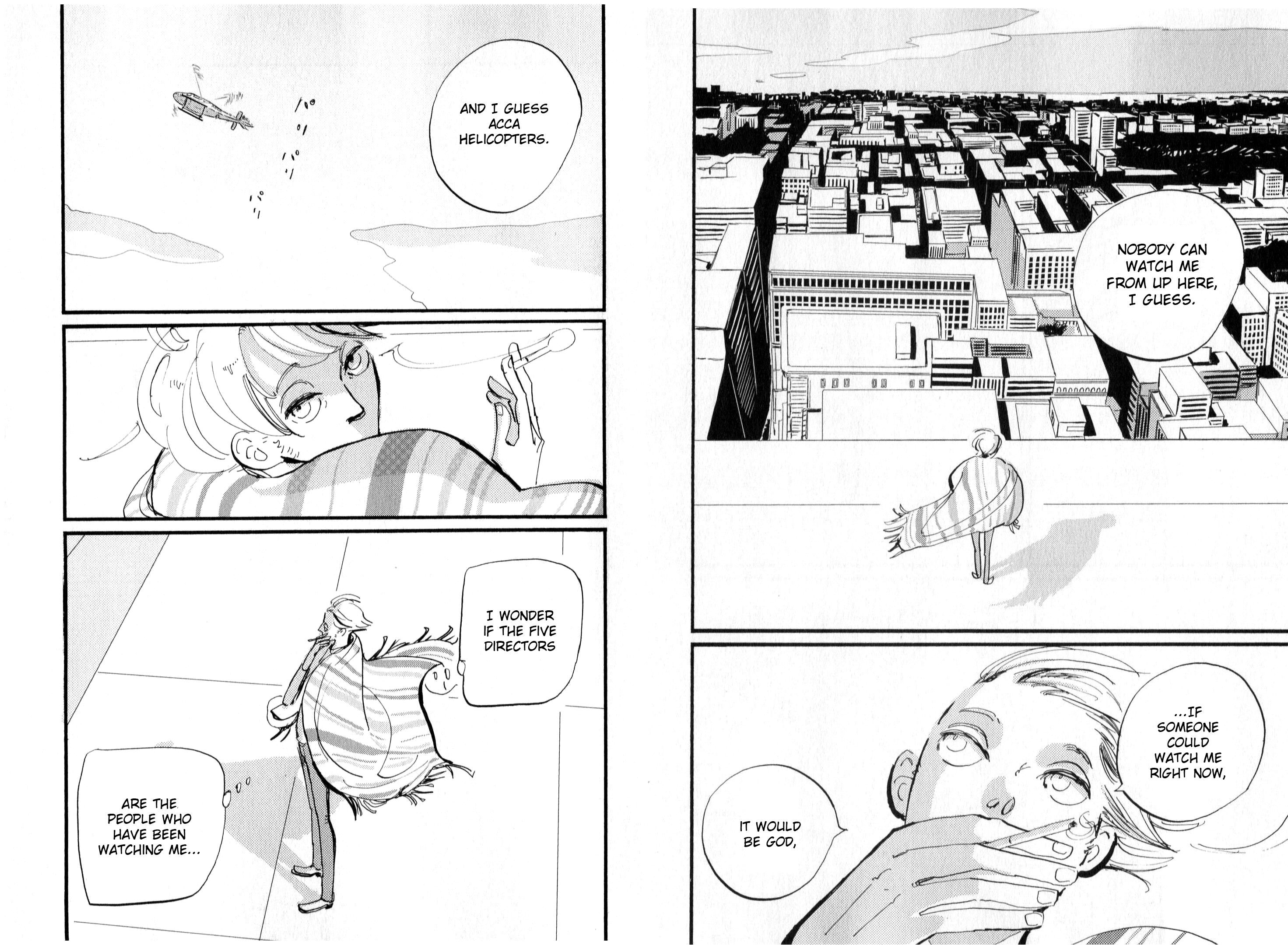Résumé éditeur : Au cœur du royaume de Dowa, divisé en 13 cantons autonomes, l’organisation ACCA supervise les institutions et protège la paix depuis près de 100 ans. Jean Ortas, sous-chef de la brigade de contre-espionnage d’Acca, est chargé de contrôler les agents et les données de cette organisation séculaire.