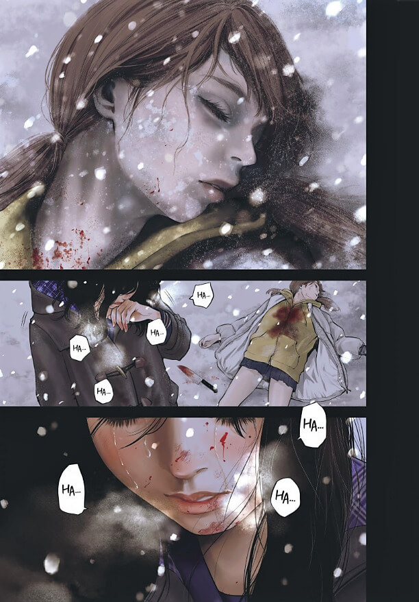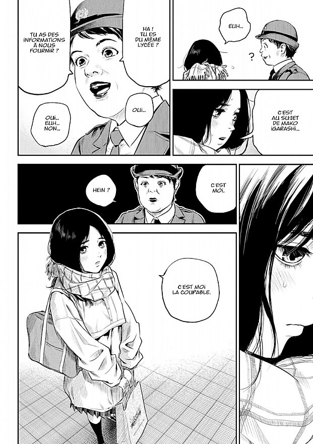 Résumé de l’éditeur : La tranquillité d’une petite ville japonaise, recouverte de neige, est brutalement perturbée par un meurtre odieux. Le corps démembré d’une lycéenne du nom de Mako Igarashi, est retrouvé près d’un lac. Bientôt, Mizuki Aikawa, élève au même lycée que la victime, revendique les faits auprès des forces de police locales. Cependant, alors qu’elle relate les événements, le doute s’invite progressivement dans la tête de ses avocats. Quels lourds secrets Mako et Mizuki partageaient-elle ?