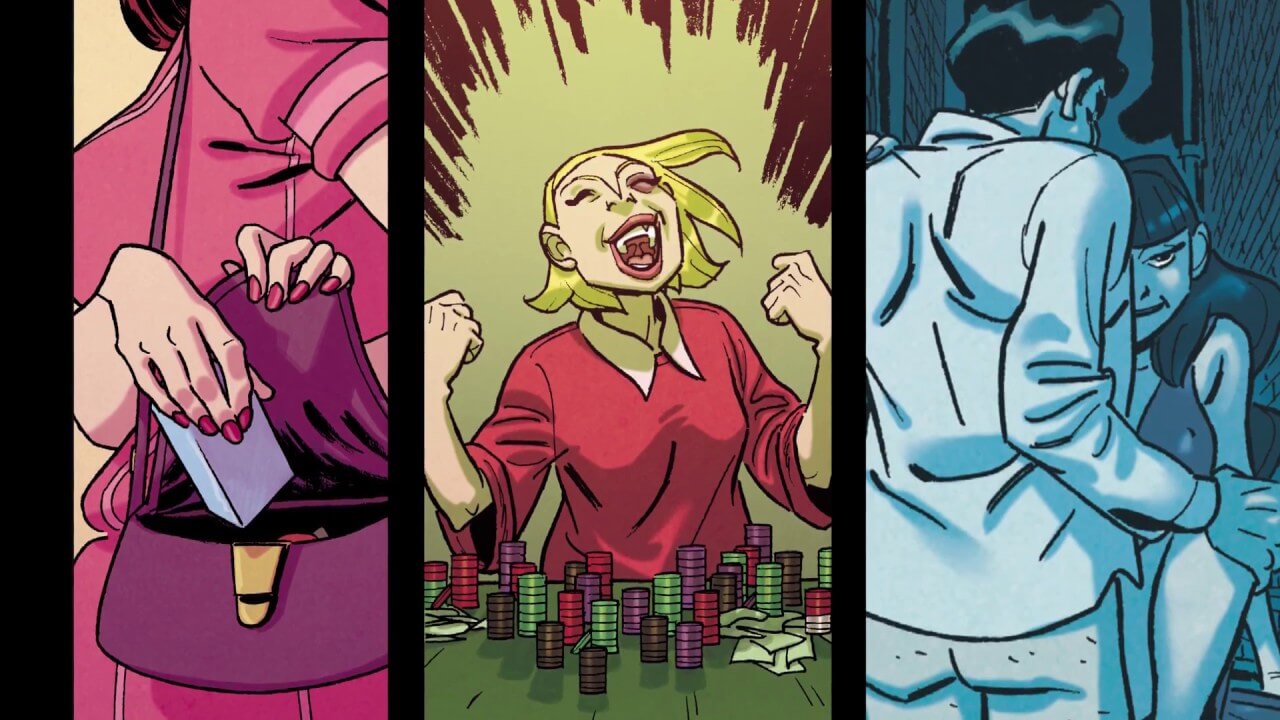 Sophie perd tout son argent dans des parties de poker clandestin, au point d’être rackettée par des hommes un peu louche. Ses meubles et sa voiture sont mis en gage pour rembourser les sommes colossales. Son amie – cleptomane – ne peut s’empêcher de voler dans les magasins.