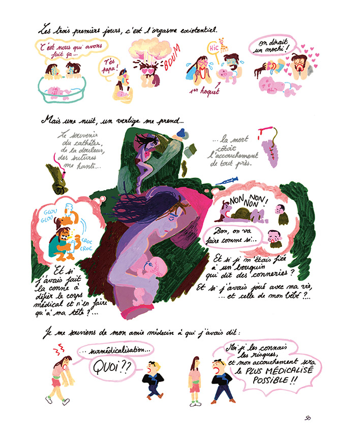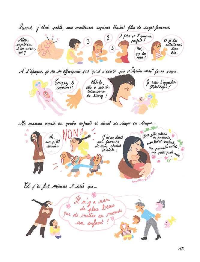 Résumé de l’éditeur : Après une entrée remarquée dans le dessin animé et le roman graphique, Lucrèce Andreae partage son expérience de la maternité dans une autobiographie percutante, parfaite illustration du malaise de toute une génération. Jeune, belle, talentueuse, elle a trouvé l’amour. Maintenant elle veut un bébé. Les enfants, c’est son truc, elle adore, elle connaît. Mais la sienne, sa merveille, sa perle, elle va lui offrir un rêve incarné. Elle n’est pas de celles qui gueulent sur leurs mioches, elle vise un idéal : le respect de l’enfant. Elle ne le sait pas encore : les enfants sont des plaies, et la maternité irréversible.
