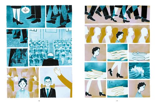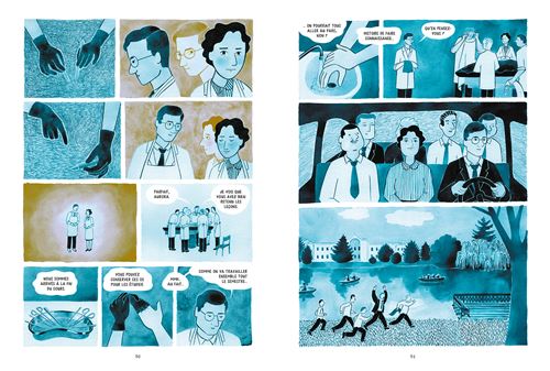 Le travail graphique effectué dans Anatomie d’un cœur est vraiment très intéressant. Le choix d’Antonia Bañados d’opter pour ce camaïeu de bleus permet de conférer à l’histoire la froideur des salles d’anatomie, du monde hospitalier et de la dictature. Mais ce choix permet également de montrer la chaleur des sentiments des personnages. Que ce soient des sentiments amoureux, amicaux ou familiaux.