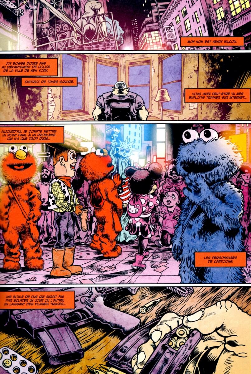 - Times Scare de Run : New York abrite l’une des places les plus convoitées et visitées dans le monde. Ainsi, Times Square accueille plus de vingt-cinq millions de curieux chaque année. Aujourd’hui, il est fréquent d’y voir des personnes déguisées en personnage célèbre de dessin-animé. Moyennant un pourboire, les touristes peuvent profiter d’une photo-souvenir. Un effet de mode de plus en plus insupportable pour l’officier de police Henry Wilcox. Démis de ses fonctions pour avoir agressé et humilié un artiste de rue grimé en Spiderman, Henry entend faire comprendre qu’il est dans le vrai et veut prouver de manière radicale que sous n’importe quel déguisement, peut se cacher un terroriste prêt à se faire sauter. Run, dans son terrain de prédilection, le paysage américain, n’y va pas de main morte. Le plus effroyable étant que cette histoire pourrait tout à fait être confrontée à la réalité. Et ce, jusqu’à l’aberrante réflexion finale du Président des États-Unis…