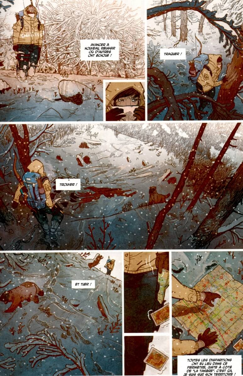 - Wintekowa, la dernière traque de Tom Longley de Hasteda et Bablet : retour sur un lieu sinistre pour Tom. Cinq ans après l’agression de sa femme et la disparition de son fils, il revient à la maison de vacances familiale. Avec un seul objectif, traquer, trouver et tuer le monstre qui a enlevé et probablement tué Jonah. C’est un homme habité par la vengeance que développe Hasteda dans cette mystérieuse poursuite au Wendigo. Servie par l’excellent dessin de Mathieu Bablet, l’auteur de Shangri-la s’emploie à respecter brillamment l’atmosphère anxiogène du scénario. La chasse est ouverte…