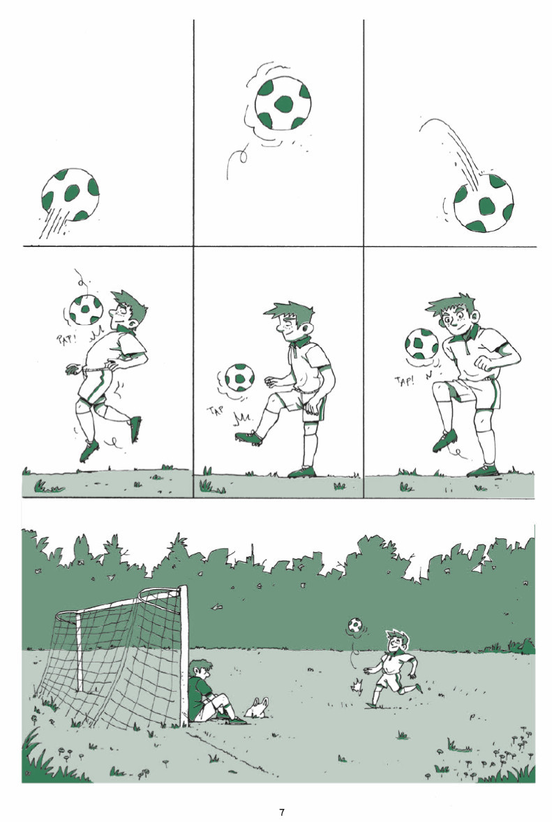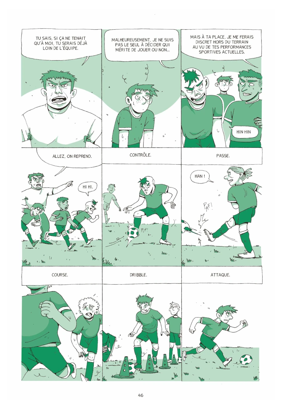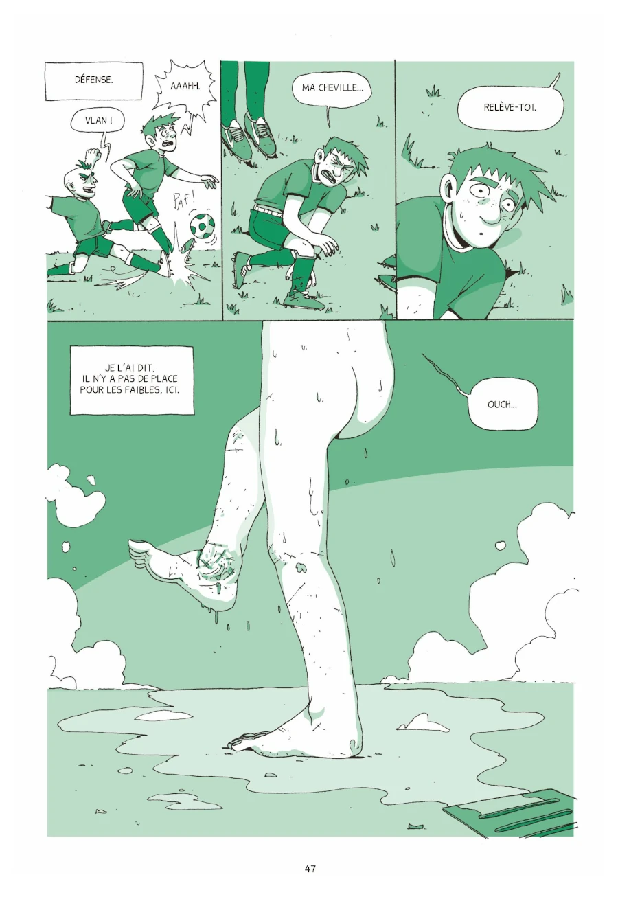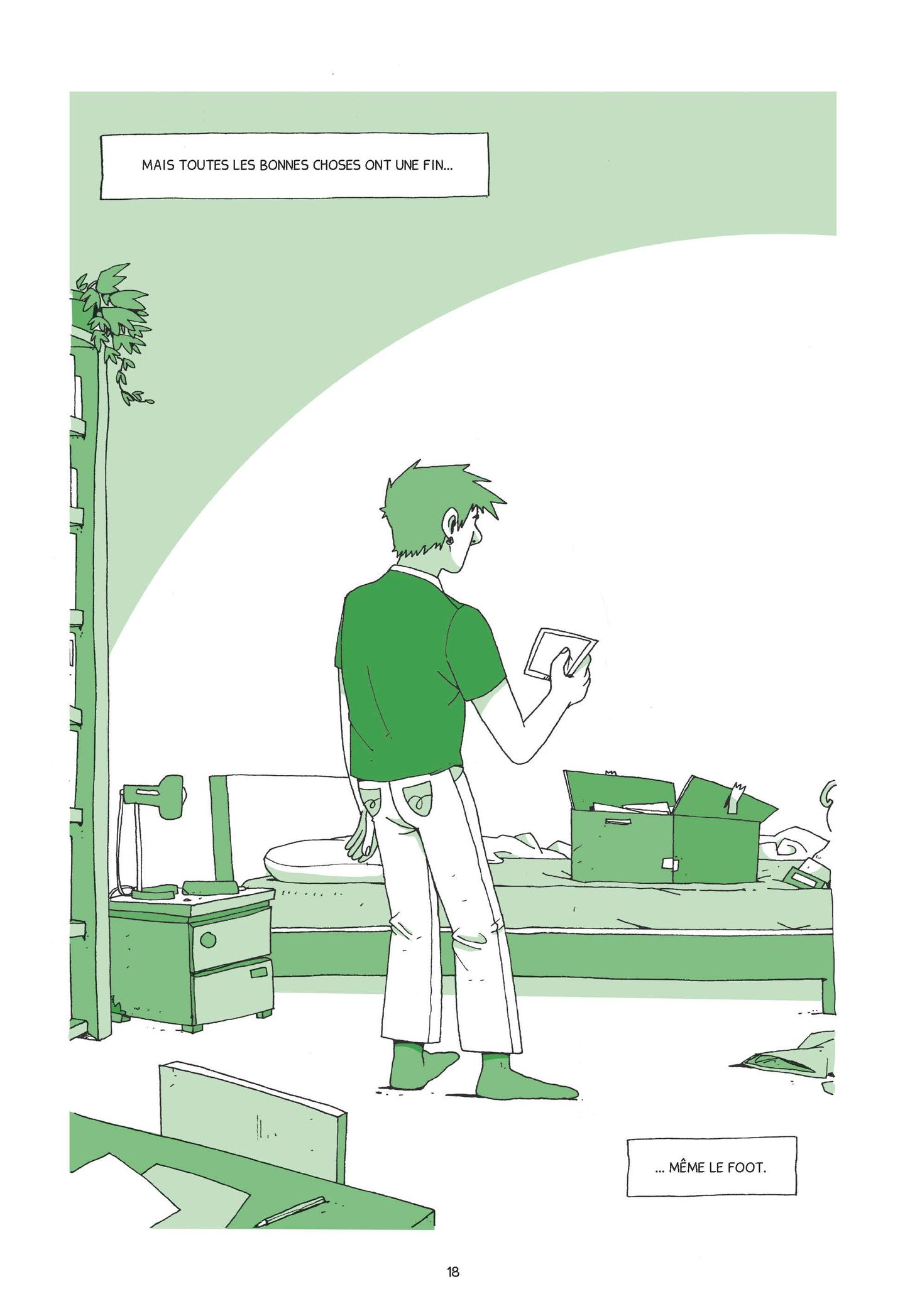 Ce sont les paroles de Maxime Schertenleib à propose du football. A mesure qu’il va s’écarter des terrains, le jeune Helvète se rapproche de son autre passion : le dessin. À 25 ans, alors qu’il est presque professionnel, il finit par abandonner sa carrière footballistique et se lance dans des études de dessin. Et c’est en dessinant sa propre expérience dans cet album en bichromie (vert et blanc) qu’il va exorciser ses démons.
