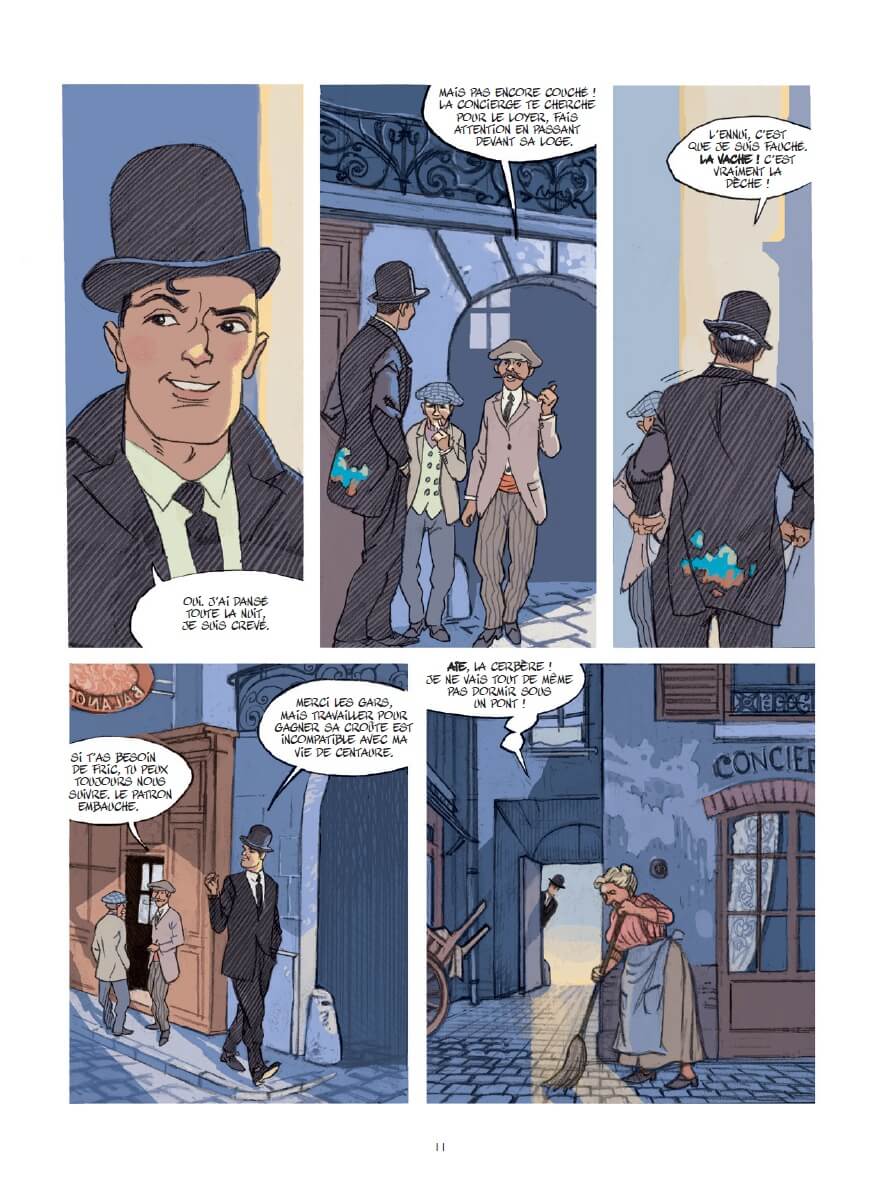 Je ne vous en dis pas plus, mais rien qu’avec ces quelques lignes, je suis sûr que vous pouvez déjà percevoir la vie mouvementée d’Arthur Cravan. Mais cette vie n’en est pas moins très intéressante. Jack Manini (S.O.S Lusitania, La guerre des Amants) a passé deux ans de sa vie a étudié ce personnage contradictoire, scandaleux, insupportable mais fascinant. Lui-même dessinateur-boxeur, le personnage l’a particulièrement inspiré, et cela se ressent dans les quelques 206 pages de cette biographie.