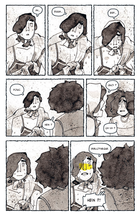 Le silence se réinstalle après, pour ne réapparaître qu’avec l’apparition du second protagoniste : Pouic. C’est d’ailleurs le premier mot qui s’échappe de l’inconnu qui fait soudainement face à Vlada. L’autrice insinue subtilement l’importance de la parole, de l’échange, grâce à la relation naissante entre Vlada et Pouic. Cette dernière met notamment quelques bulles à récupérer les rudiments du langage.
