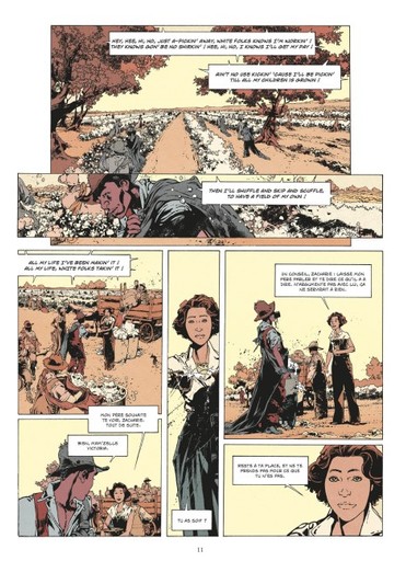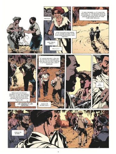 Avec une utilisation très présente des ombres, justifiée par l’ensoleillement, mais pas uniquement, le coloriste arrive parfois à unifier la couleur de peau des personnages. Comme s’il voulait montrer que ces hommes et ces femmes auraient pu, même à cette période, être considérés comme égaux.