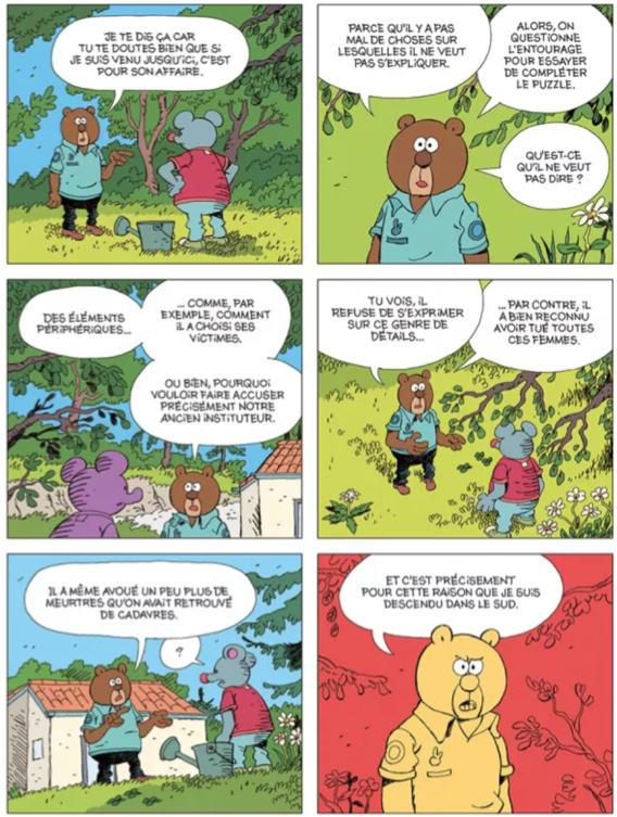 Autreville nous mène en barque. L’album navigue entre chronique sociale, satire drôle et enquête éprouvante. Le tout sous la forme d’un anthropomorphisme ciselé par l’auteur belge. On apprécie ce zoomorphisme très réussi. De petits animaux mais de grandes responsabilités.