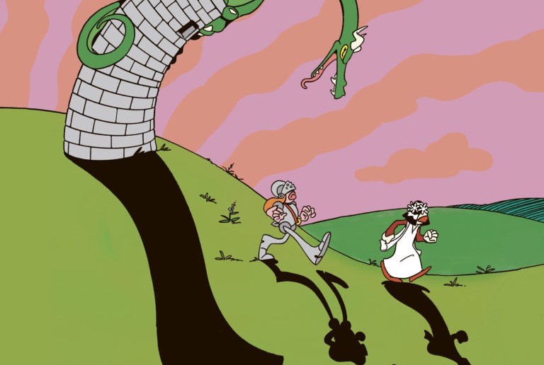 Alors, l’héritier missionne une chevalière pour aller délivrer une princesse séquestrée en haut d’une tour par un terrible dragon. Après une lutte acharnée avec la créature ailée, la chevalière et la princesse prennent le chemin du château…