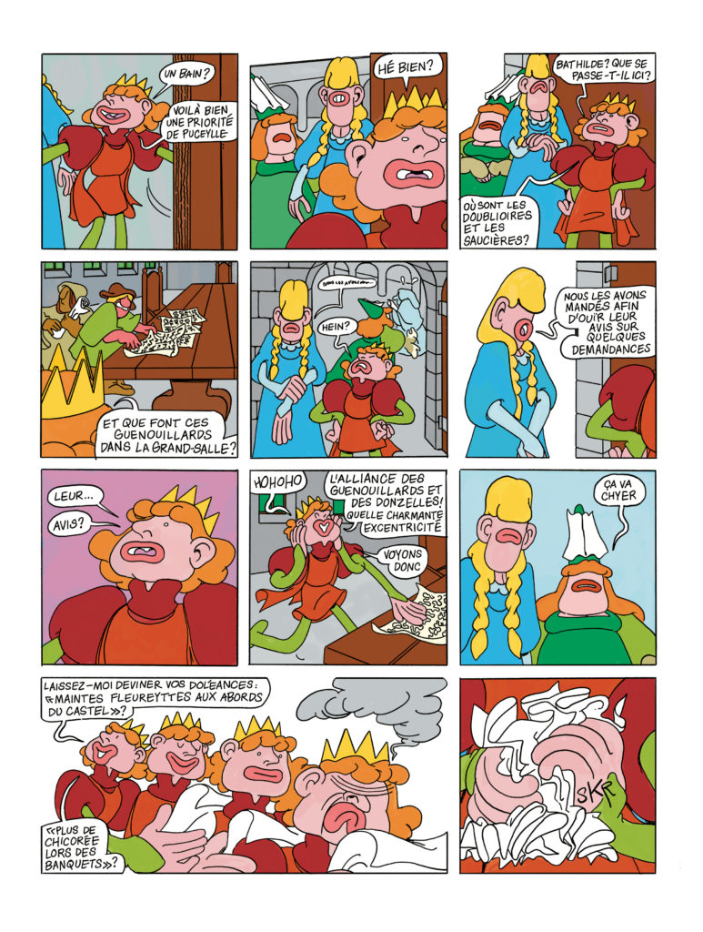 Avec cette fable fantastique, Camille Potte peut se jouer des concepts contemporains et thématiques actuelles. Le tout dans un Moyen-Âge fantasmé et délyrant ! L’humour est à tous les étages et toutes les pages. Dans les dialogues, mais également dans les situations complaytement rocambolesques.