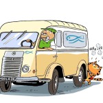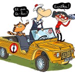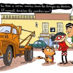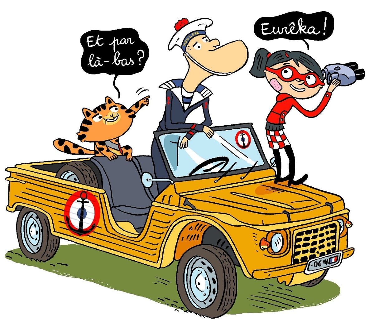 Le jeune lecteur découvrira aussi un marin sympathique et des vieilles voitures (MG, Jeep) que Laurent Audouin a pris plaisir à dessiner. Son trait ligne-claire et très arrondi convient parfaitement aux plus jeunes. Coloré et d’une belle modernité, son dessin anime les pages d’une belle façon, grâce à une mise en scène dynamique. Les double-pages qui émaillent l’album lui permettent de jouer avec ses personnages en utilisant le même dessin mais en les faisant bouger de la page-rabat à l’illustration principale.