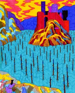 Résumé de l’éditeur : Après un long voyage, une soucoupe se pose au milieu des dolmens. Deux hommes en descendent, qui retrouvent leur planète natale. Le premier, muet, est désigné sous le nom de « Silence ». Le second prend le nom de Béla. Il porte un bandeau sur l’oeil, découvre un pays qu’il n’a jamais connu, et part à la rencontre de son père. Tombé dans une embuscade, ils sont faits prisonniers par un peuple étrange ; tous portent un masque identique au visage de l’illustre aïeul, Lemon Jefferson, assassiné 250 ans plus tôt. Béla ne reverra pas son père. Il vient de comprendre. Silence lui a menti. Héritier d’un royaume qui n’existe plus, ignorant de ses secrets, Béla est perdu dans ce monde qui devrait être le sien. Il cherche à en percer le mystère, caché sans doute dans le tombeau de sa mère Alaska, enfoui sous la grande forteresse. Ainsi, le pense-t-il, il pourra renoncer à son nom, à la violence qui se joue de tous, et enfin croire en son propre destin. Plus de 10 ans après Lemon Jefferson et la grande aventure, Simon Roussin renoue avec le dessin au feutre et l’épopée tragique. Aux couleurs candides et violentes du premier opus, s’ajoutent une lumière mélancolique, dans ce livre magnifique travaillé par un grand sentiment d’étrangeté.