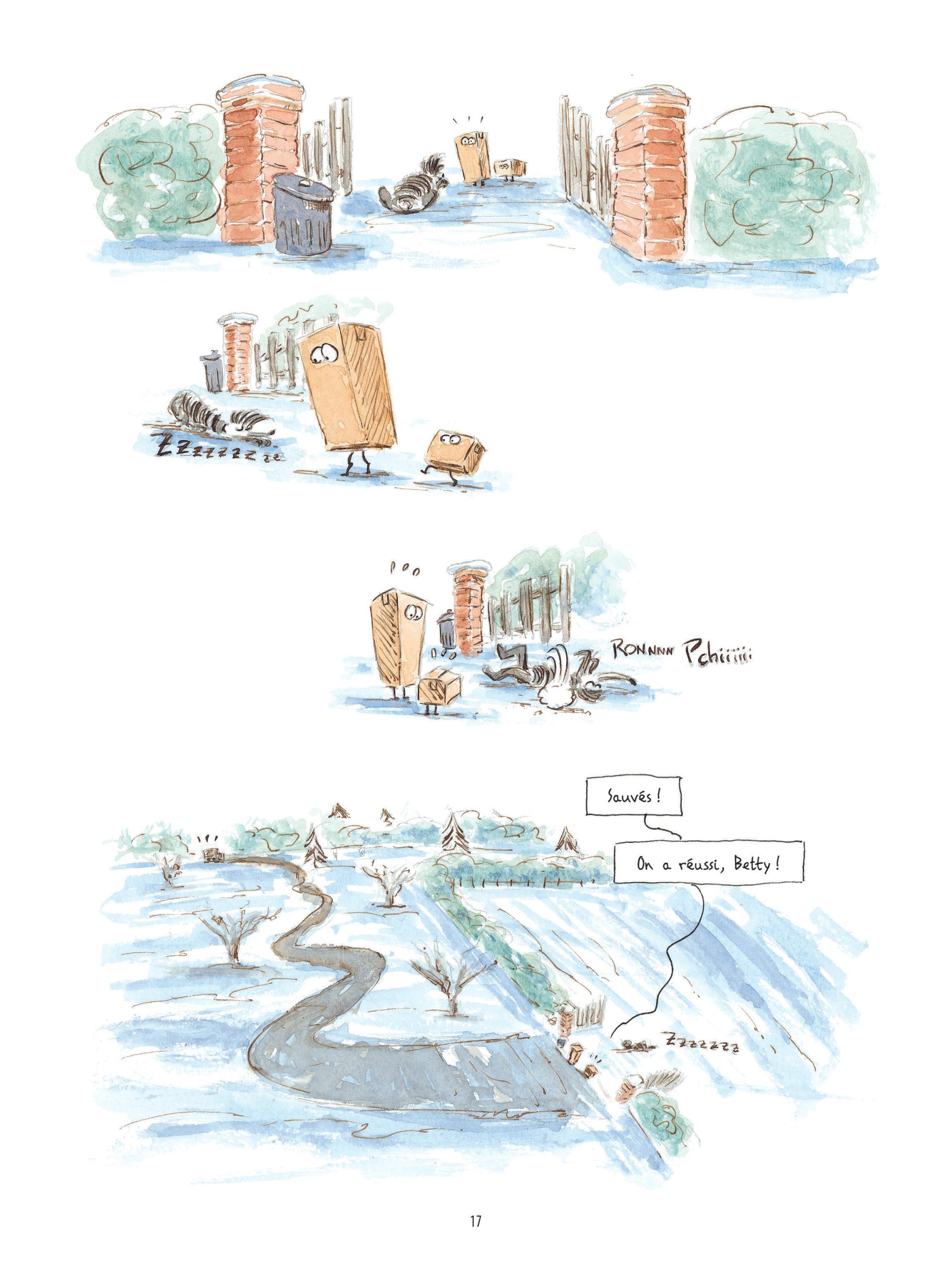 Surtout que le festin arrive dans deux jours ! Il leur faut trouver un plan pour s’évader. Malgré Alphonse, le chien de garde, Betty et Polo réussissent à s’échapper dans une benne à ordure.