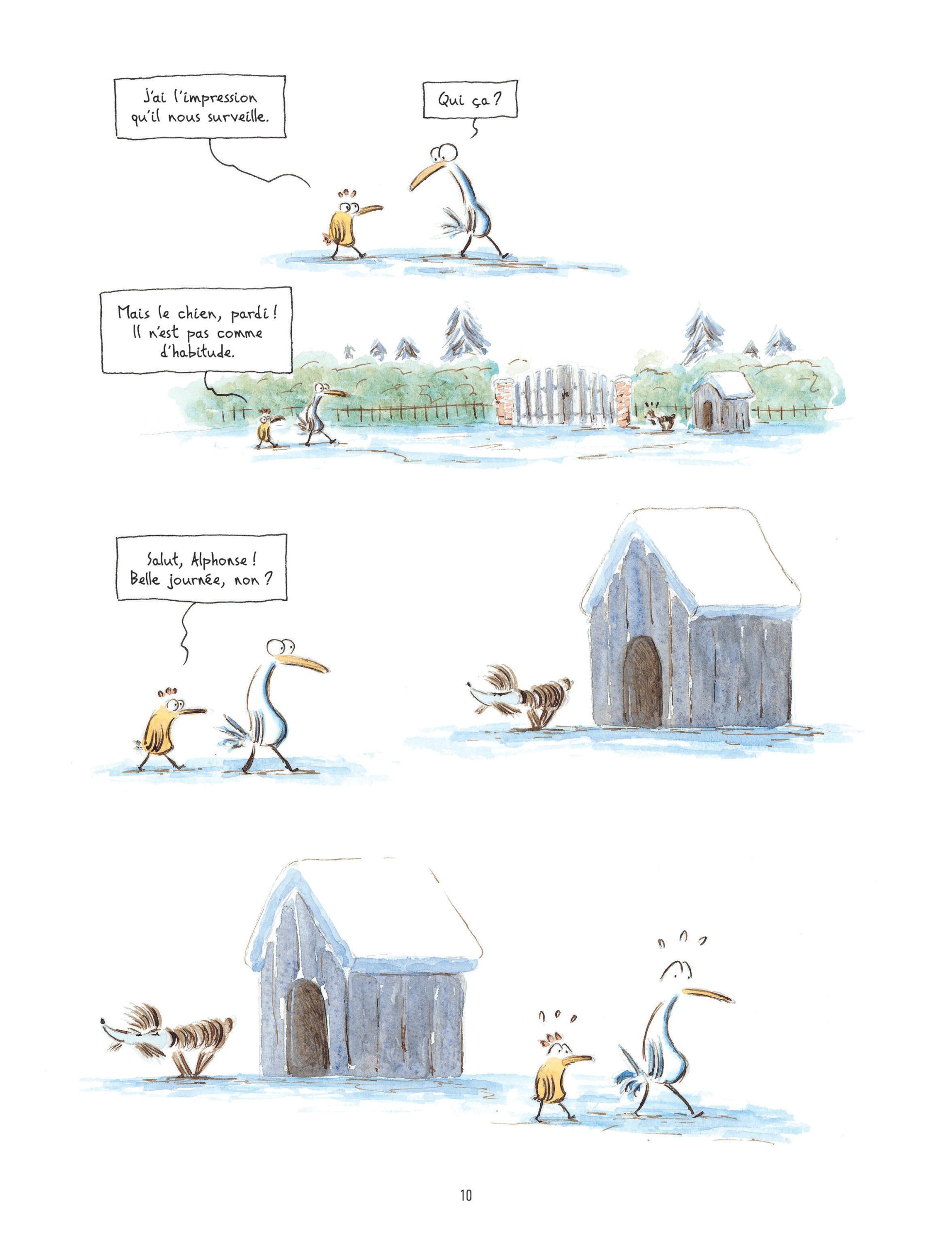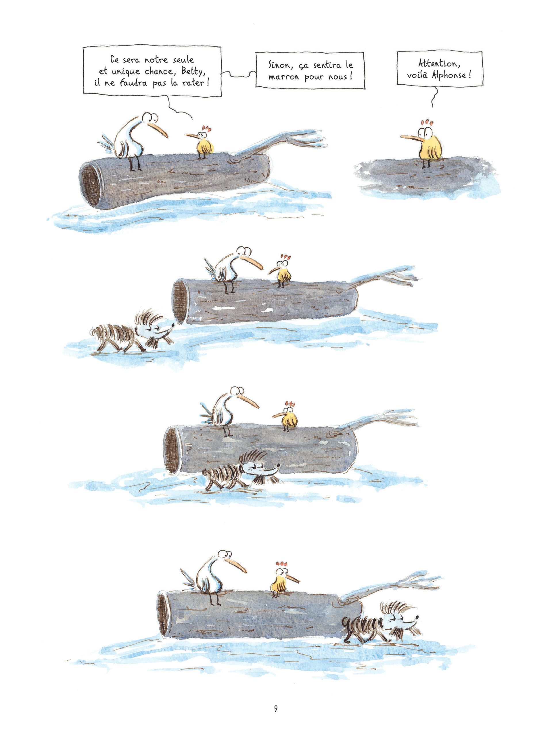Des couleurs aquarellées mettent en valeur les designs des animaux, très expressifs par leurs yeux et leurs bouches. Un dessin qui permet de renforcer un humour fait des gags très visuels. Pour appuyer mon propos, il vous suffira de regarder l’ultrabook de l’auteur pour vous rendre compte de la beauté de ses illustrations.