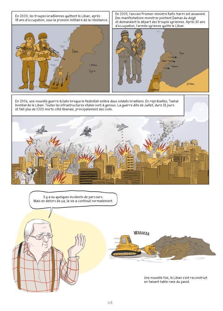 Résumé de l’éditeur : Cet album retrace l’histoire de Robert Sacy, un médecin libanais. Âgé de 73 ans, le docteur a eu une vie mouvementée à l’image du Liban. Il a traversé la guerre civile libanaise (1975-1990) et la reconstruction des années 1990-2000. Pour plus de justice