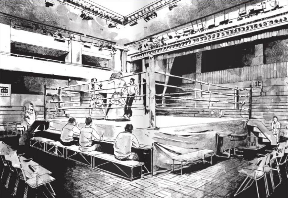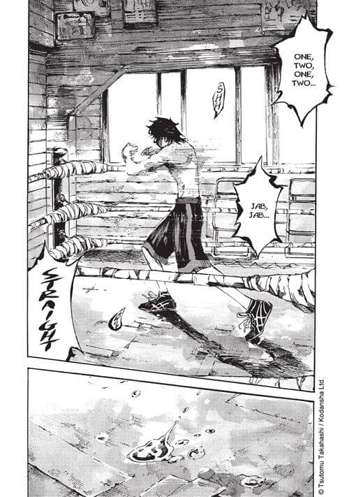 Il s’entraîne seul, sans coach dans cette salle un peu miteuse. Il y a là son grand-père et Sayuri une jeune fille. Il n’est focus que sur lui et sa boxe. Avec son père, il communique par lettre. Ce dernier gère pour lui, à distance, ses entraînements et met même en place sa tactique pour les combats.