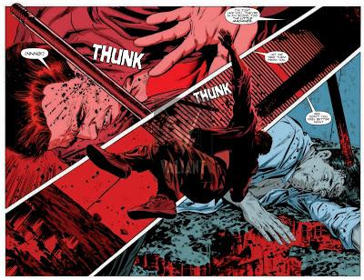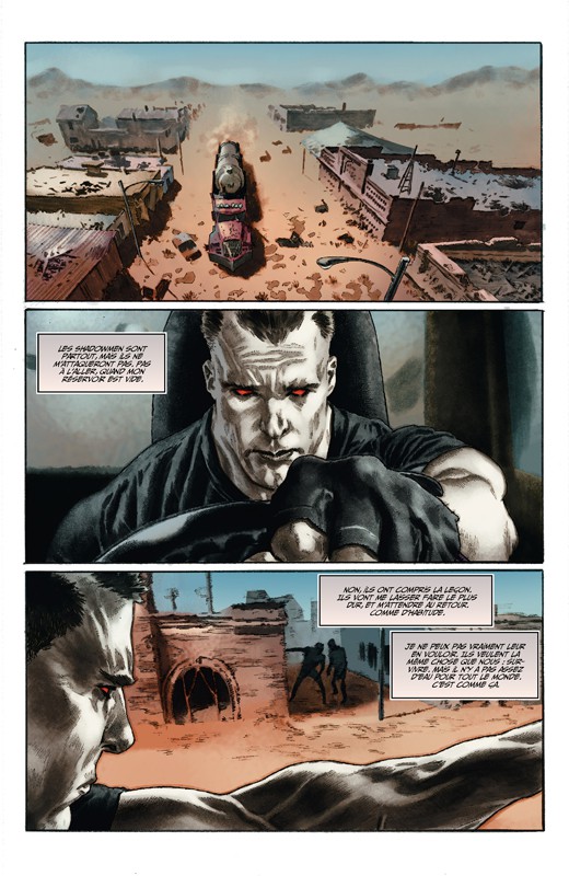 La deuxième difficulté, et non des moindres, consiste à être original et nuancé face à un personnage monolithique. Dans cette suite des aventures de Bloodshot, pour arriver à ses fins, Jeff Lemire va mettre l’accent sur l’épaisseur psychologique du personnage. Plus fragile car plus humain, il va devoir apprendre à faire confiance et à accepter de l’aide. Mais surtout, en fin connaisseur des comics, tous univers confondus, l’auteur va puiser des éléments chez les héros emblématiques du comic-book. Tantôt Punisher, tantôt Superman, tantôt Deadpool, tantôt Old Man Logan, Bloodshot se retrouve plongé dans la cour des personnages marquants dont certains épisodes entrent dans la catégorie très fermée des incontournables.