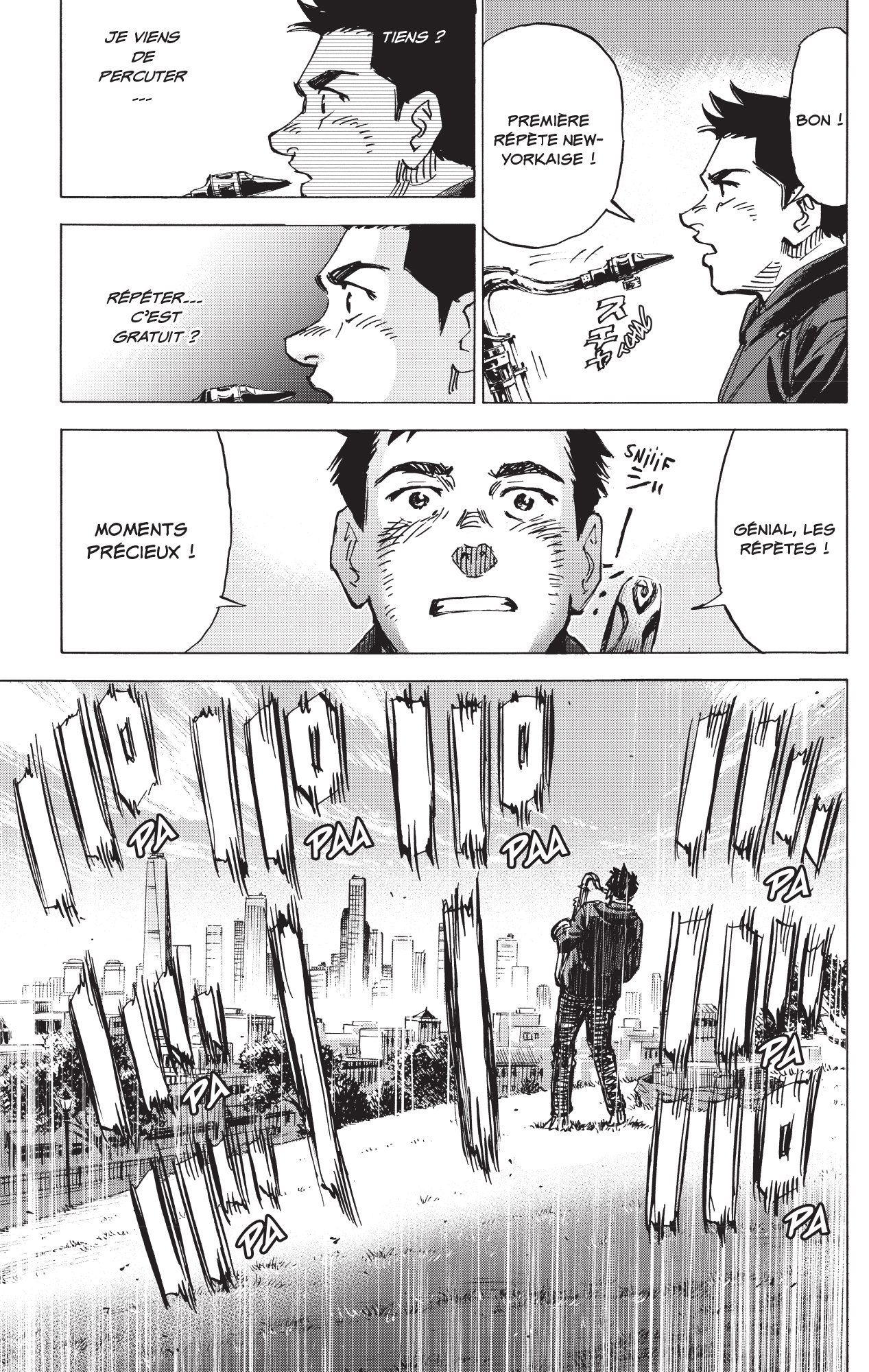 Résumé de l’éditeur : La 4e saison de Blue Giant ! New York… Dai arrive dans la capitale mondiale du jazz ! Cependant, la vie et surtout les loyers y sont exorbitants. Dai commence à prendre sa place de leader du quartet, mais un nombre incalculable de musiciens de jazz viennent tenter leur chance à New York ! Doucement, son style commence à envelopper les gratte-ciel…