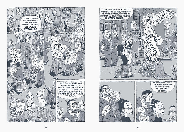 Résumé de l’éditeur : Un roman graphique qui déroule le fil d’une romance entre deux jeunes femmes avides de croquer le monde. Dans le Paris des années 1950, Juliet, Américaine fraîchement débarquée à Paris, partage un appartement avec Paulette, jeune révolutionnaire dans l’âme. Juliet est étudiante en art et, pour payer son loyer, peint des portraits chez les particuliers. L’un de ses modèles est Deborah, une Anglaise angélique, piégée dans une famille engoncée dans les traditions de sa classe, autour d’un ordre social qui semble révolu. De son côté, Juliet se sent elle-même limitée dans sa formation académique. Il faut dire qu’on est alors en pleine effervescence des avant-gardes, dans tous les domaines de l’art… Dans cette ville de Paris exubérante, propice à l’inspiration et au désir, Juliet trouve en Deborah une improbable alliée qui la comprend, et même un peu plus. Mais c’est sans compter leurs amis et leur famille, qui tentent de les séparer.