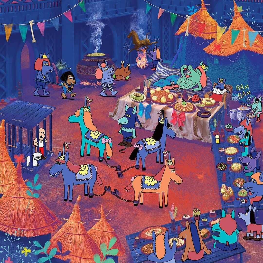 Cette très belle fantasy grand public est une excellente parodie du genre. Pour le dessin, il a été réalisé à quatre mains. Tout d’abord les recherches et crayonnés de Anouk Ricard puis ensuite les décors de Etienne Chaize et enfin la mise en couleur.