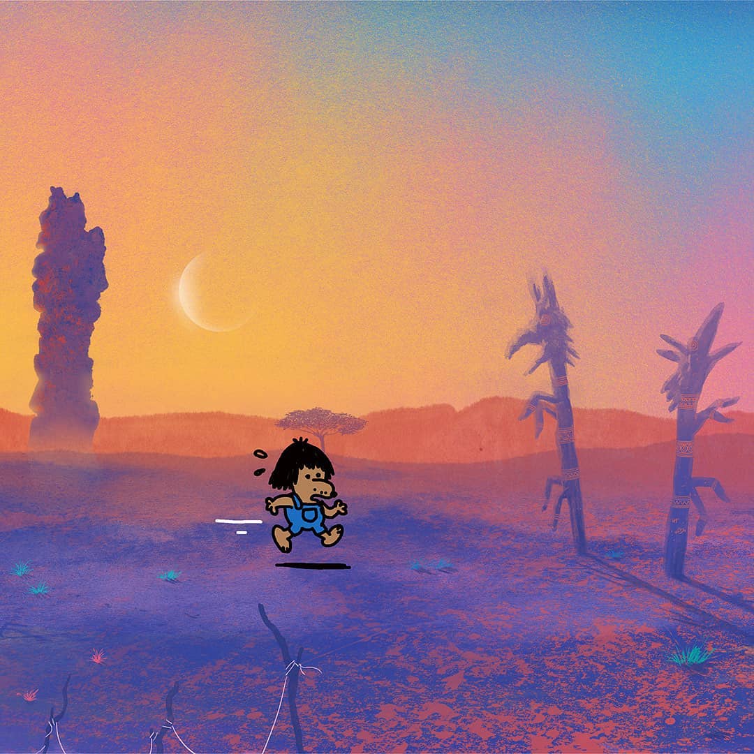 En effet, leurs deux univers de dessins sont éloignés mais le résultat final est original et fortement réussi. Les personnages tout en rondeur de l’autrice de Commissaire Toumi se fondent dans les décors très graphiques et kitsch de l’auteur de Hélios. Ce côté tranché entre les deux était recherché et fonctionne à merveille. Ainsi les animaux anthropomorphes se détachent des vignettes comme dans les dessins animés des années 30/40/50.