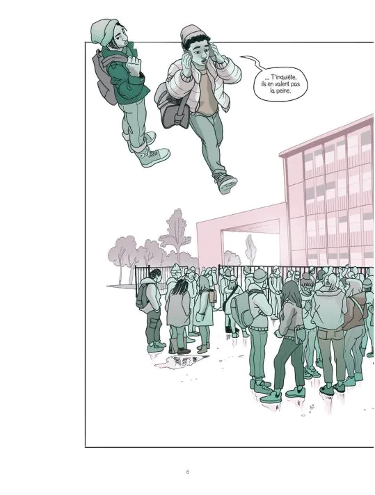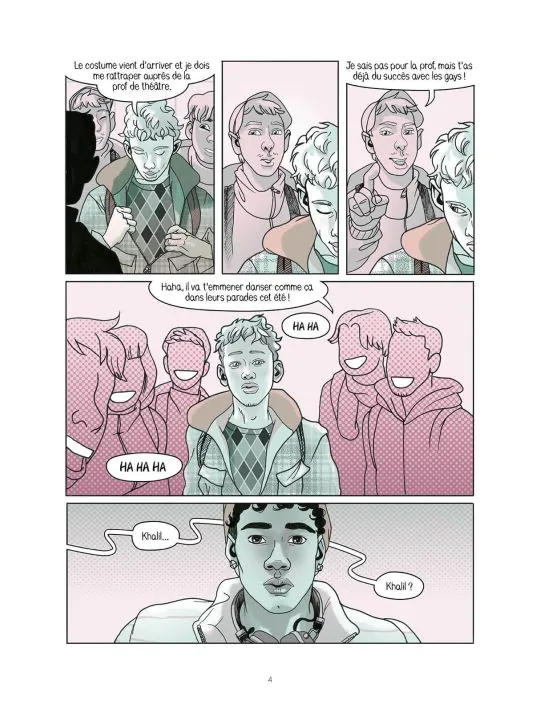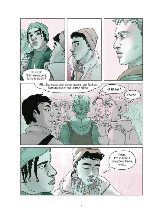 Au lycée, Khalil a aussi des ami.es bienveillant.es. Aïssata et Sacha sont là pour lui. Enfin, ils sont là, les uns pour les autres. Une solidarité queer bienvenue. Surtout que Sacha est attiré par son pote.