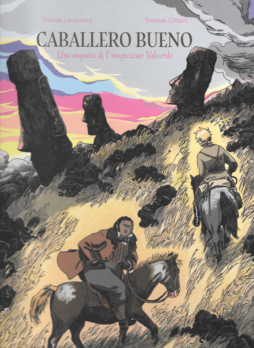 Pour ce polar étonnant, Thomas Lavachery s’est inspiré de l’histoire de son grand-père qui fit partie de l’expédition franco-belge vers l’île de Pâques en 1934. Il en reste des récits et des photos qui donnent l’atmosphère et l’intrigue même de cet album… Des lieux incomparables, à la météo changeante, aux statues énigmatiques, presque autant que cet inspecteur Valverde, pachyderme dopé au laudanum, calmant à base d’opium, flic tempétueux et gracieux violoniste.