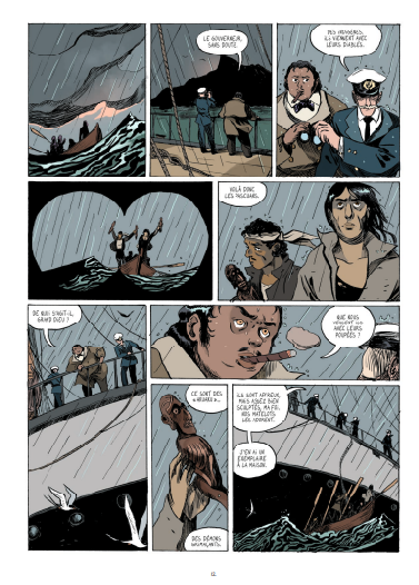 Il y a d’ailleurs toute une galerie de personnages particulièrement intéressante dans cet album. Après la série Bjorn le morphir (7 tomes entre 2009 et 2018), Thomas Lavachery retrouve Thomas Gilbert (Lumière noire, Les filles de Salem). Celui-ci apporte une tonalité plutôt sombre à ce polar. La lumière et les couleurs s’invitent en même temps que le soleil, rare sur l’île. Il impose une vraie patte graphique qui convient bien à cette enquête et à ces lieux atypiques.