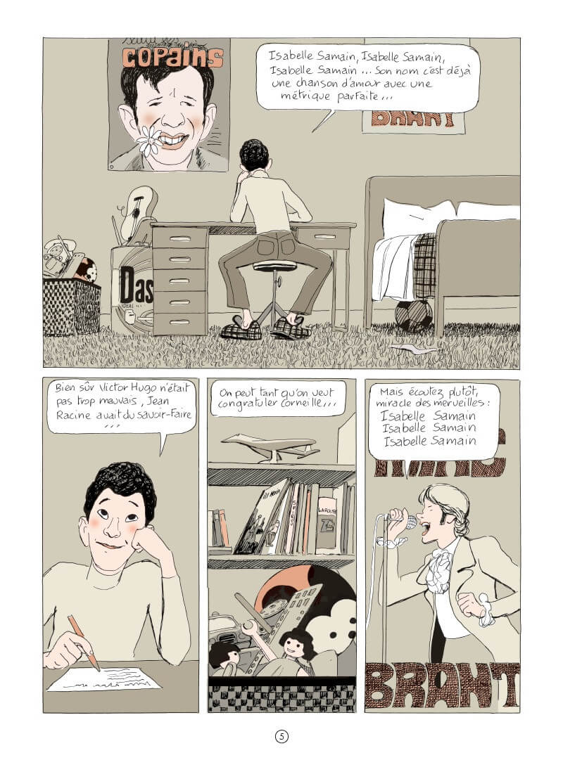 Dans sa chambre d’ado, François se plaît à rêver de Isabelle Samain. Se répétant en boucle ce nom et ce prénom, il divague et papillonne. Il tente là un poème, là une gribouille sur un abribus.