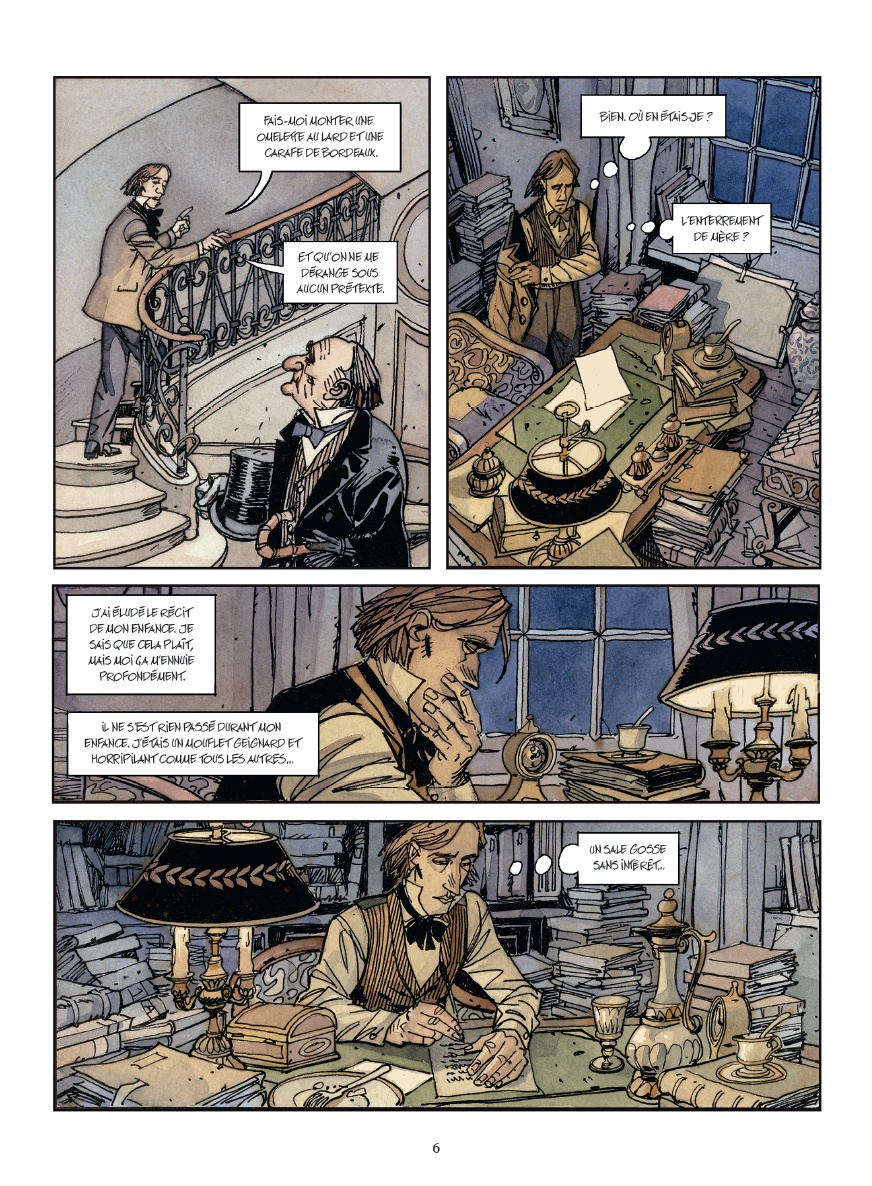 Le Paris sombre et gothique aux rues pavées revit sous un trait de crayon et des encrages précis. La patte, les cadrages intelligents, le sens de la narration de ces quasi-octogénaires de la bande dessinée n’ont rien perdu de leur acuité. C’est avec plaisir assurément que l’on se laissera porter par ce Chagrin…