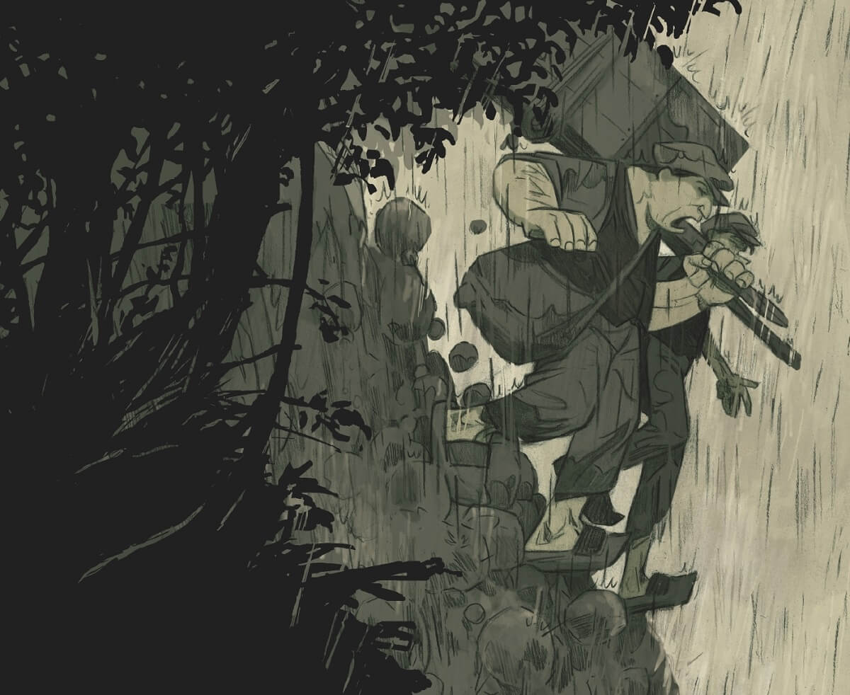 Charogne, cette forte histoire d’hommes, est portée par une partie graphique de premier plan. Le trait semi-réaliste en noir et blanc de Borris apporte son lot de suspense et alourdit l’ambiance pesante du récit.
