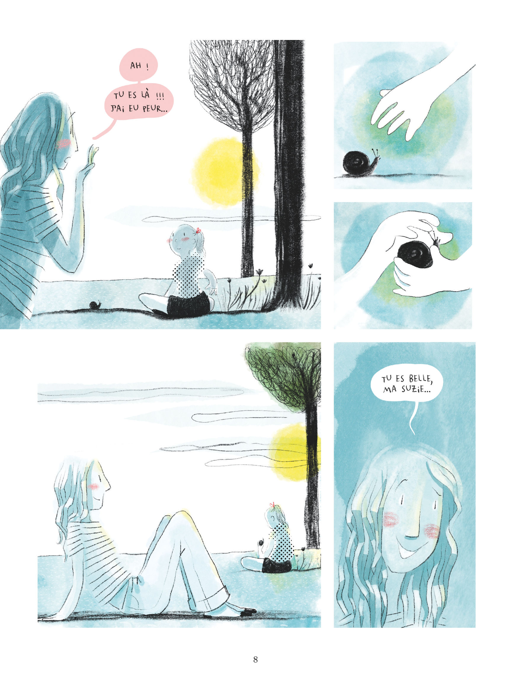 C’est un récit intelligent et porteur d’espoir que proposent ici les deux autrices. Le scénario de Sophie Adriansen ne verse pas dans le pathos et se clôt sur une note d’espoir. Quant au dessin à la gouache et au crayon de Mlle Caroline, il fait ici merveille.