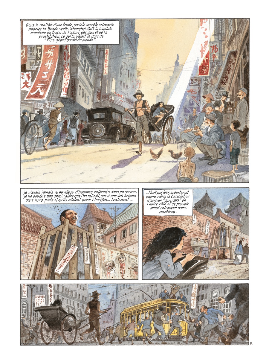 Pour China Li, leur nouvelle série, ils posent leurs regards sur la Chine des années 1920. Ils emmènent les lecteurs à Shanghai, une immense ville où les trafics et les triades rythment la vie de ses habitants. Plus grand bordel du monde à cette époque, la mégalopole fondait son business sur l’opium et la prostitution.