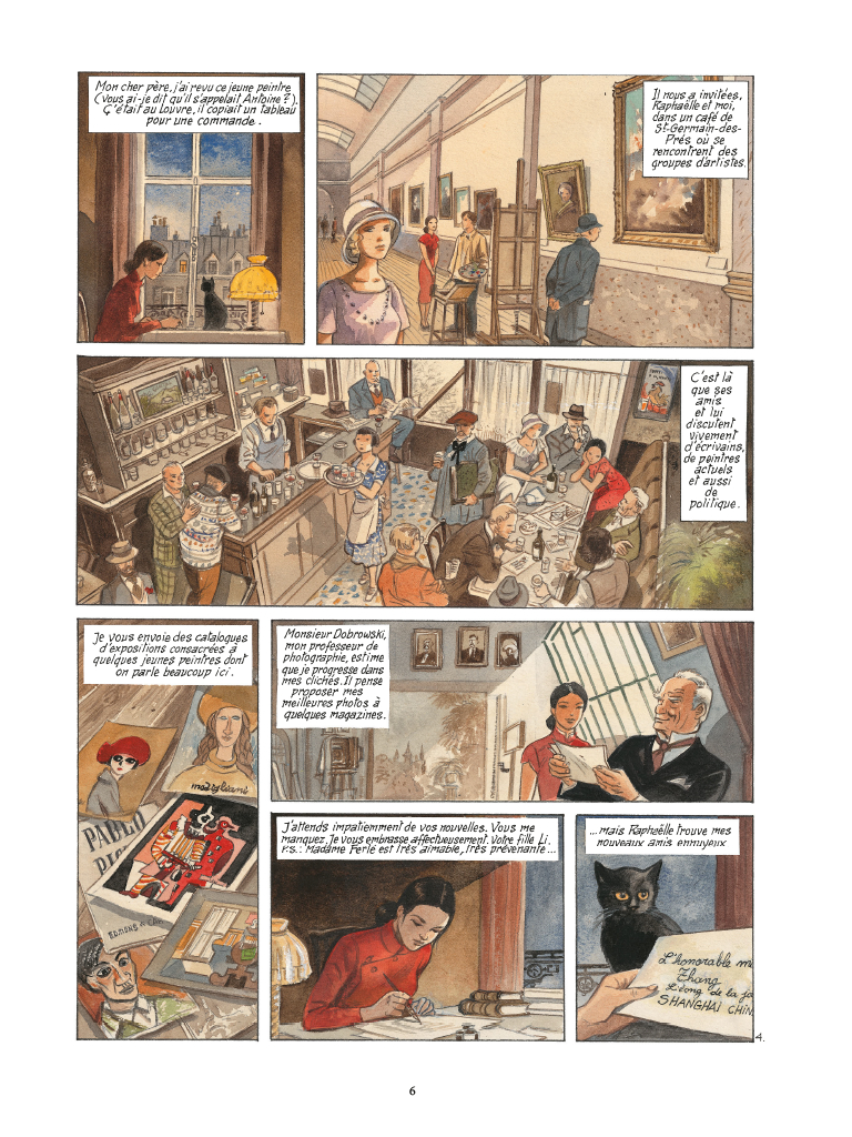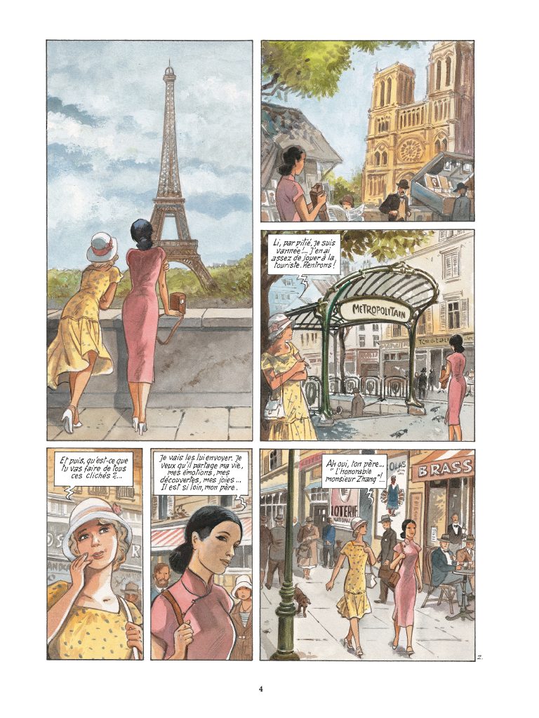 Résumé de l’éditeur : Alors que la guerre éclate en Chine, Li découvre Paris et l’amour… Alors qu’elle arrive à Paris, Li y termine ses études secondaires et entame une licence de journalisme. Dans le même temps, depuis son pays d’origine, Monsieur Zhang lui apprend par courrier que Mao lève une armée et que la famine sévit. Deux ans plus tard, la Manchourie sera envahie par le Japon. Li voudrait pouvoir aider son pays et revoir son mentor, Monsieur Zhang. Par ailleurs, à Paris, elle découvre l’amour. Comment concilier cet amour naissant et son besoin d’aider son pays ?