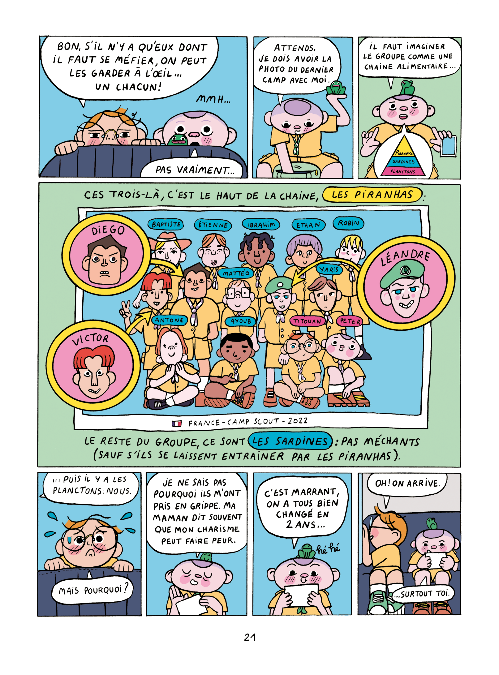 A l’aéroport, même Peter, le meilleur ami de Titouan, n’y voit que du feu, persuadé de retrouver son ami fréquenté l’année passée. Arrivés au camp scout, Peter et son ami imposteur tâchent de se fondre dans la masse non sans passer quelque peu pour les têtes de turcs.