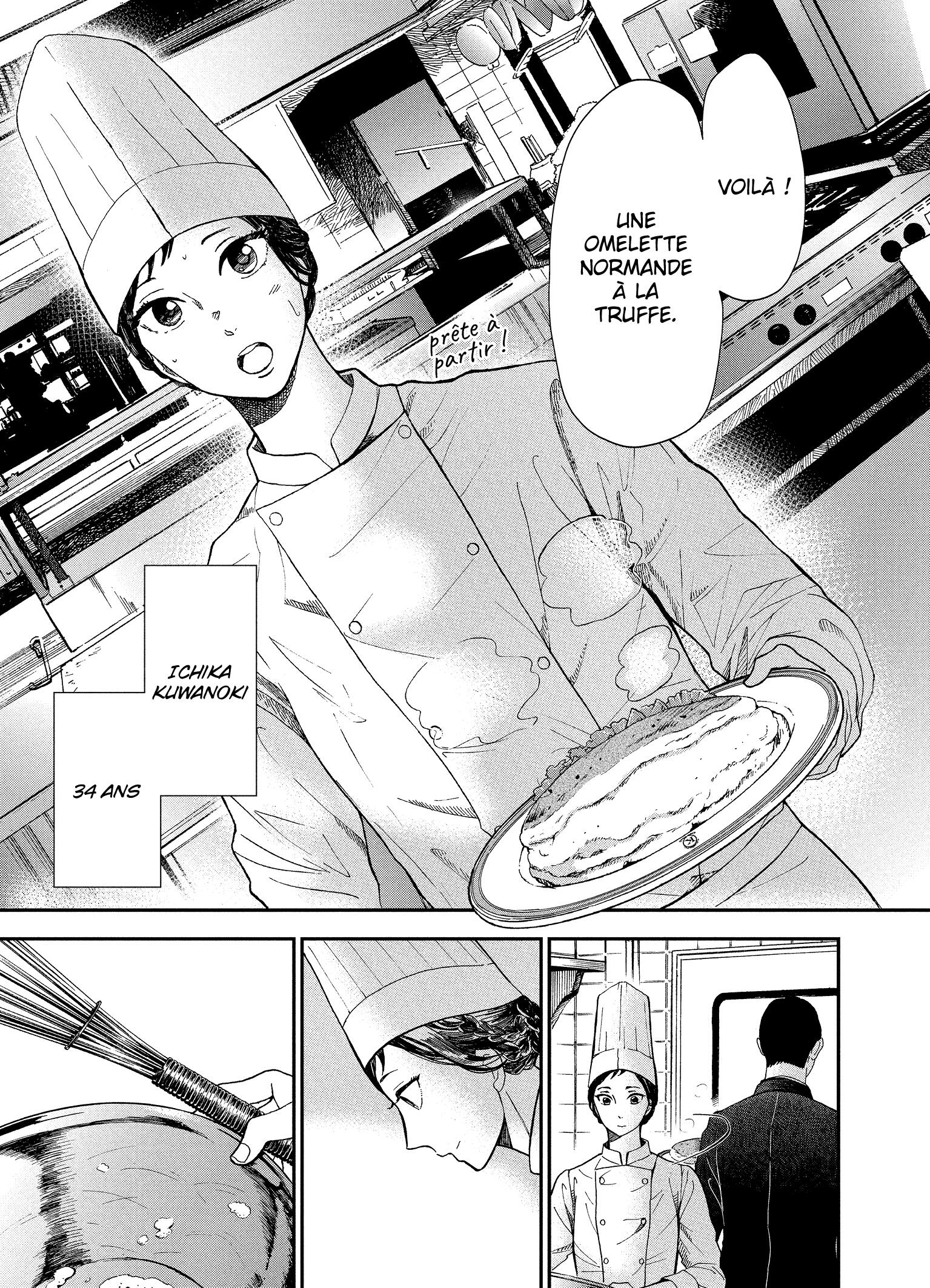 En cuisine, il n’y a que des hommes. Les femmes ne sont que “second” ou “commis”. La décoration assez datée n’est pas si engageante que cela. Les clients ne se bousculent plus au portillon. Le restaurant est proche de la faillite malgré d’excellents plats recommandés par tous.
