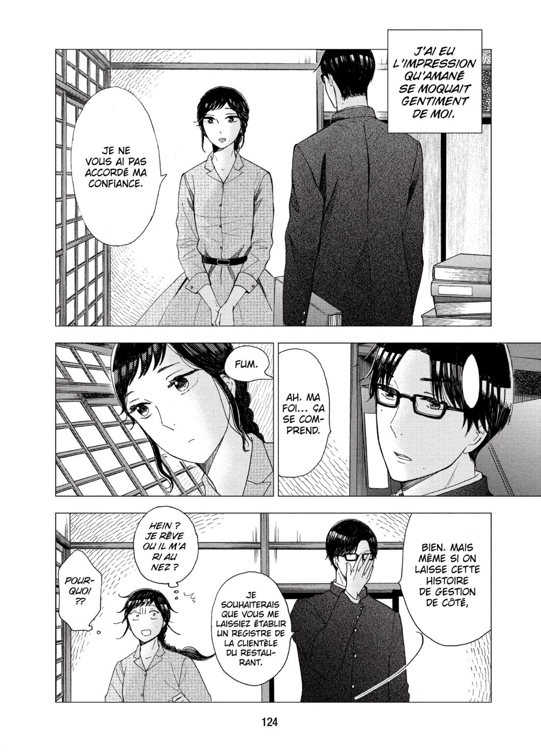 Amané, hautain et arriviste, prend vite ses marques en logeant directement chez les Kuwanoki. L’étudiant aimerait faire passer un cap au restaurant en y insérant un managérat plus moderne.