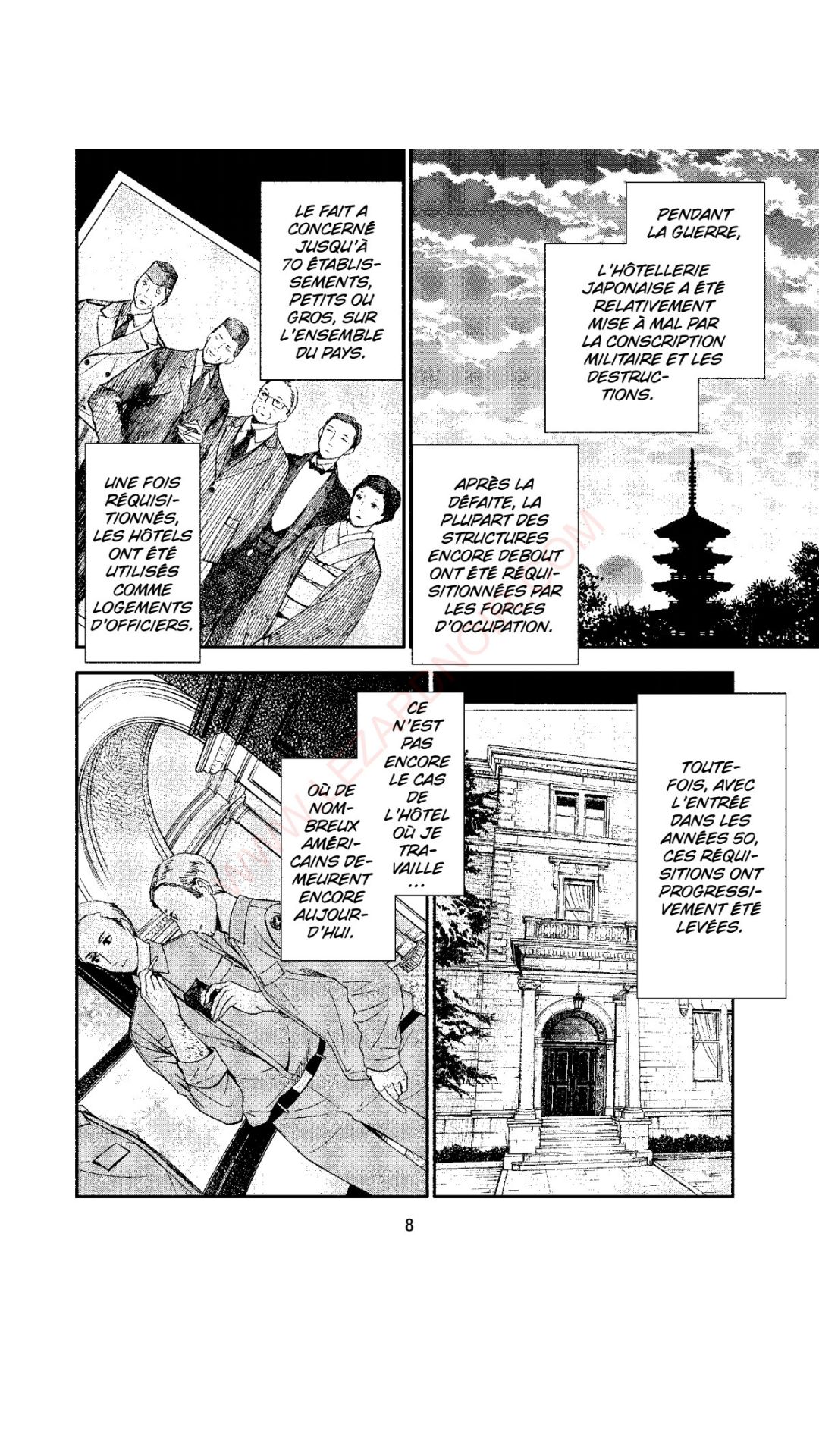 Quant à l’occupation militaire des Américains, elle est centrale dans le récit. Les soldats y sont visibles dans les hôtels et les restaurants. Madame Morgan du bureau militaire a également un rôle important dans la seconde partie de ce premier volet. A ce propos, la traduction de Mélanie Kochert met très bien en perspective ce moment. Elle insère dans les pages des notes afin de comprendre le contexte historique. Il faut souligner que nous, Français, sommes assez éloignés de cette période japonaise.