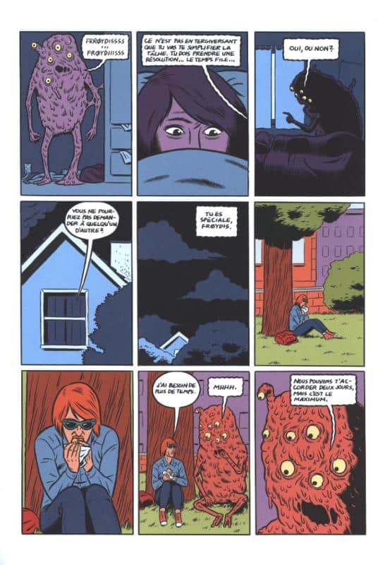 Ce qui provoque le malaise, ce ne sont pas ces créatures surgies des Contes de la crypte ou des histoires de terreur des EC Comics américains des années cinquante qui nous font aujourd’hui sourire, non, c’est cette normalité brute qui à tout moment peut basculer à la faveur d’un cauchemar d’adolescent.