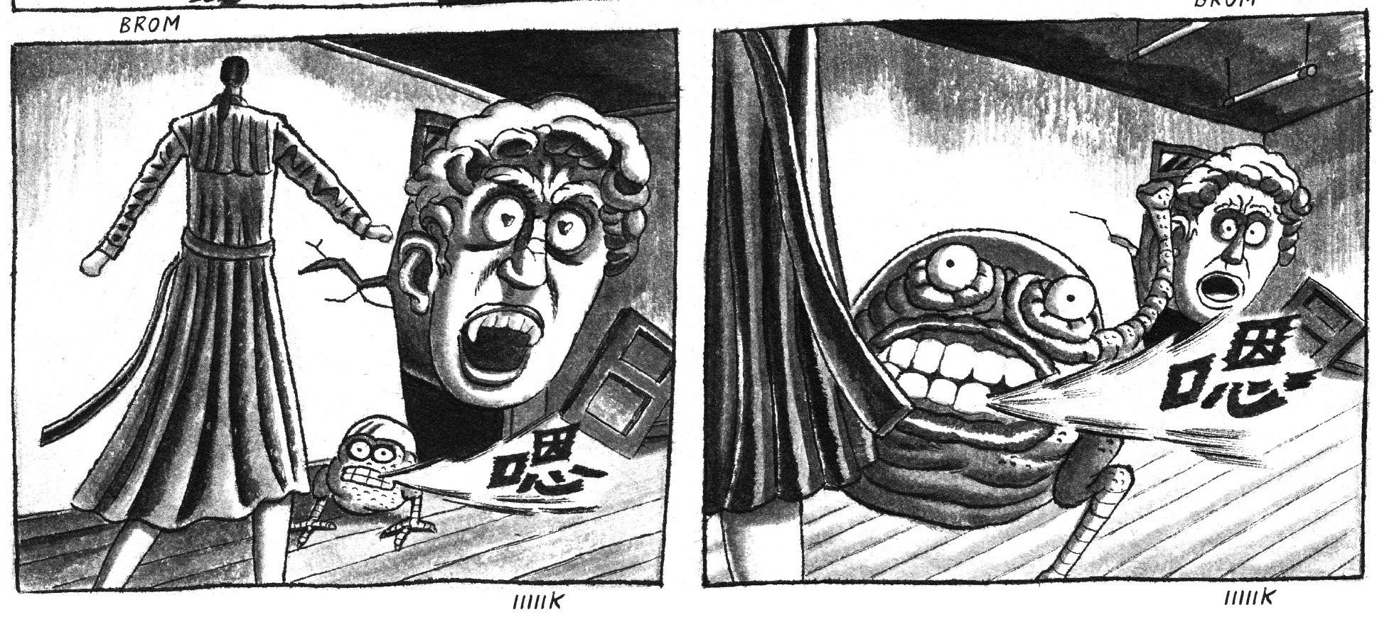 Difficile d’en dire plus sans en dévoiler son contenu sinon que l’hyper-expressivité du trait de Newliu, son dynamisme proche du cartoon (on a plus d’une fois l’impression de regarder le story-board d’un dessin-animé chelou), ses foisonnantes nuances de gris, ajoutés au très inhabituel format du livre, inventent une seconde partie à laquelle il est difficile de rester insensible.