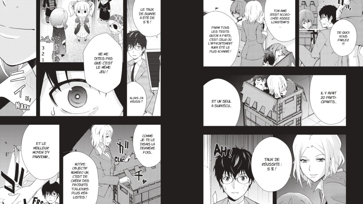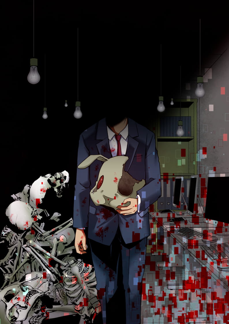 Résumé de l’éditeur : Ryosuke est le seul survivant d’un terrible massacre. Il ne sait pas pourquoi il s’est retrouvé impliqué dans cette tragédie, ni qui se cachait sous le masque de lapin porté par le responsable… Ces événements traumatisants lui permettent trois ans plus tard de décrocher un emploi de rêve dans la célèbre firme Dead Company, spécialisée dans la production de jeux vidéo de survie. Elle recrute sur un critère étrange : avoir vécu une expérience hors norme…