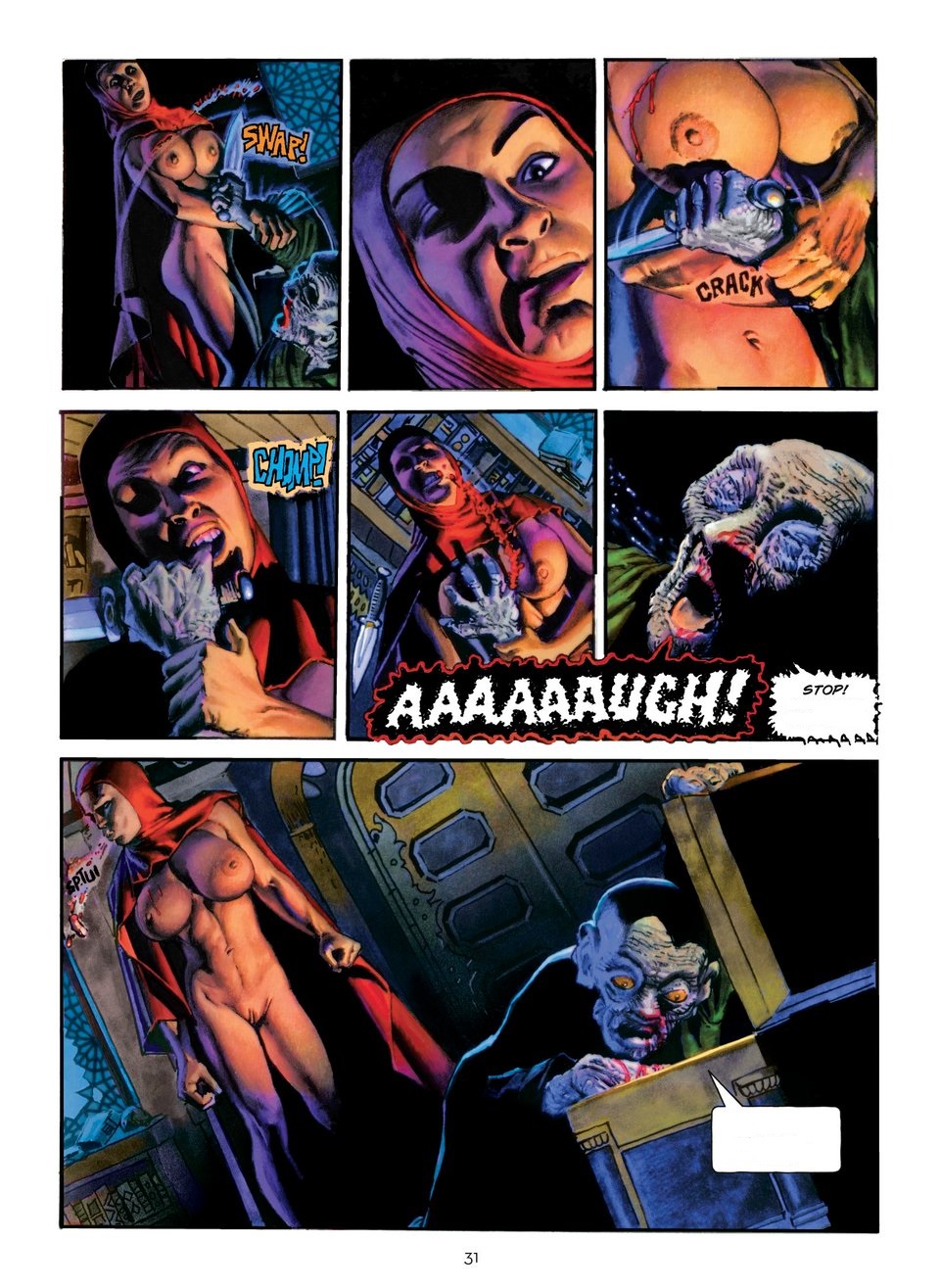 Il faut bien l’avouer, le talent graphique de Richard Corben relève du paradoxe. En effet, à première vue, ses dessins adoptent un style hyperréaliste, capable de représenter à la perfection la moindre partie du corps humain. Mais dans le même temps, ils frappent par leurs excès caricaturaux. Et de ce point de vue, on ne peut qu’être impressionné par l’audace du maître lorsqu’il représente la stature herculéenne de Den ou bien de la plastique plantureuse des personnages féminins.