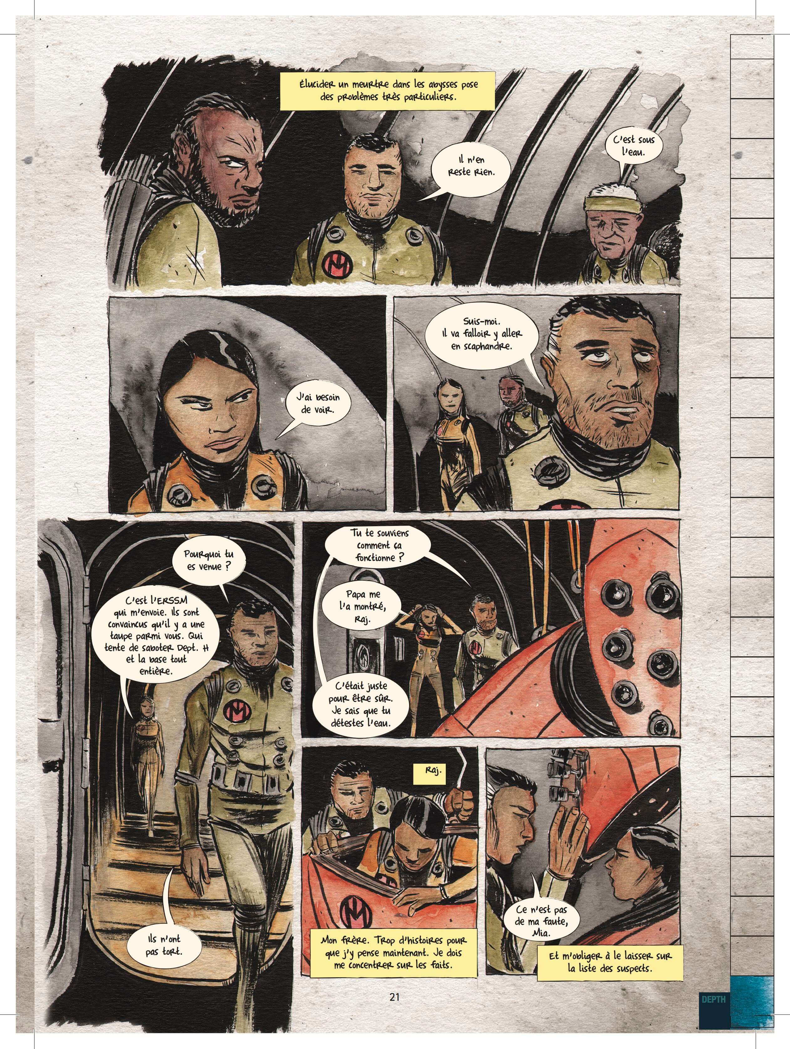 Mia Hardy est déterminée. Quelle que soit la raison de la mort de son père, elle va le découvrir. Seulement elle va devoir faire vite. La base a été sabotée, et sera entièrement inondée dans 24 heures. L’enquête peut s’avérer plutôt facile puisque la base n’est pas très grande, et qu’il s’agit surement d’un collaborateur. Car Mia sent au plus profond d’elle-même que son père a été assassiné. Mais elle va devoir être sur ses gardes. Entre un milieu déjà hostile, et un ennemi qui pourrait s’avérer particulièrement redoutable, cette enquête s’annonce très dangereuse.