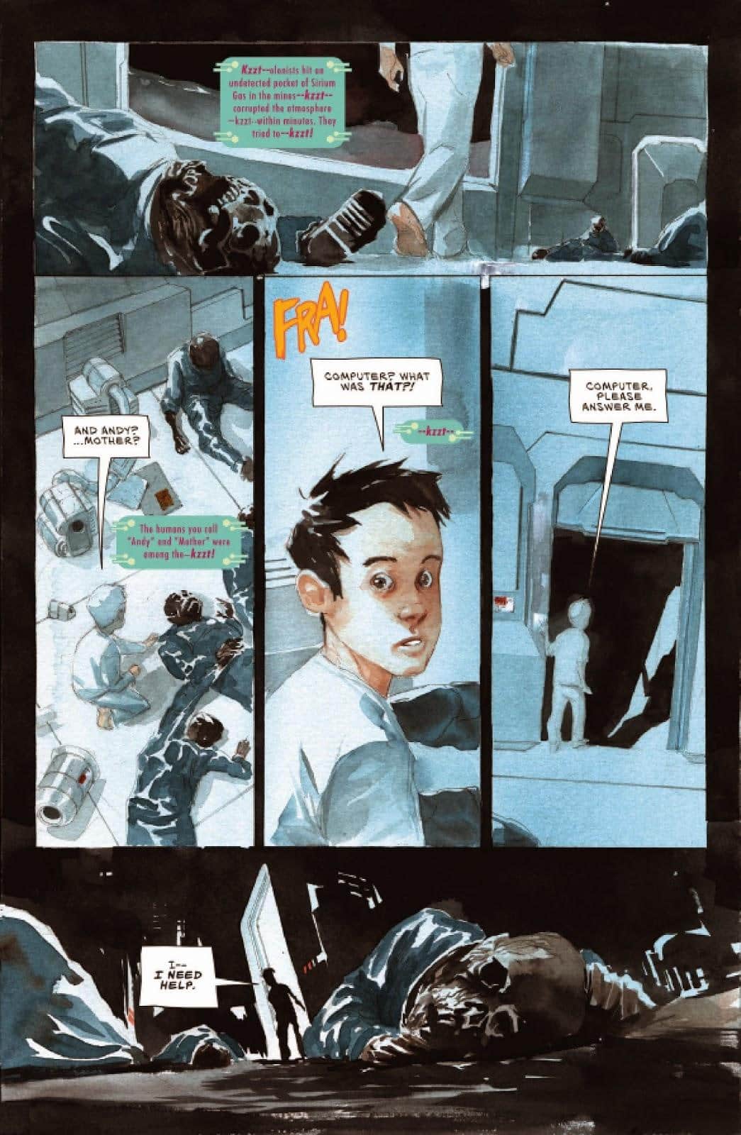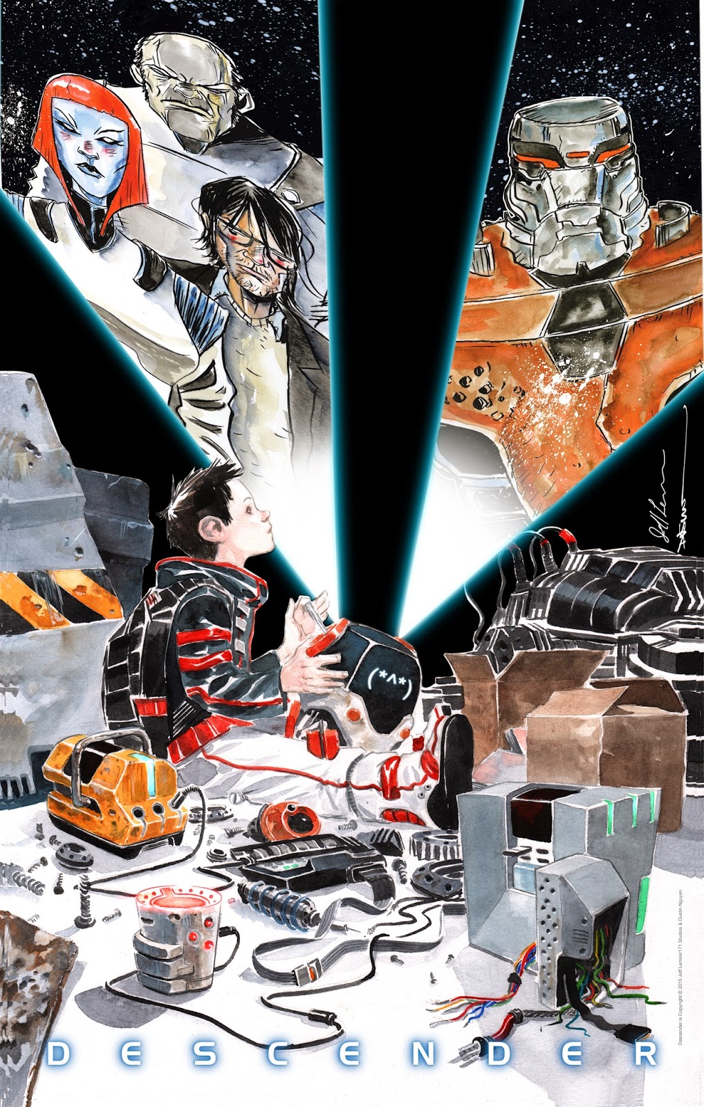 Jeff Lemire associé à Dustin Nguyen jouent le remake de la guerre entre les machines et les hommes dans l’excellent Descender, publié par Urban Comics. Pour sauver la Galaxie de sa fin inexorable, il y a Tim-21, un petit robot de compagnie.