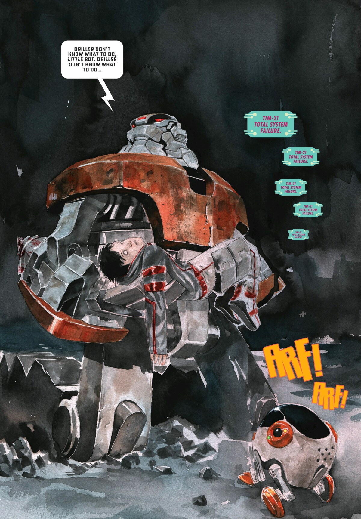 Dix années plus tard, Tim-21 se réveille sur la Lune de Dirishu 6 d’un long sommeil. Ce petit robot compagnon pour enfant est serviable et gentil. Il est triste parce que ses parents adoptifs et Andy son frère de cœur ont été exterminés par les Géants. Pour comprendre leurs morts et rattraper ces dix années, il regarde des vidéos des destructions et des pogroms sur les êtres humains.